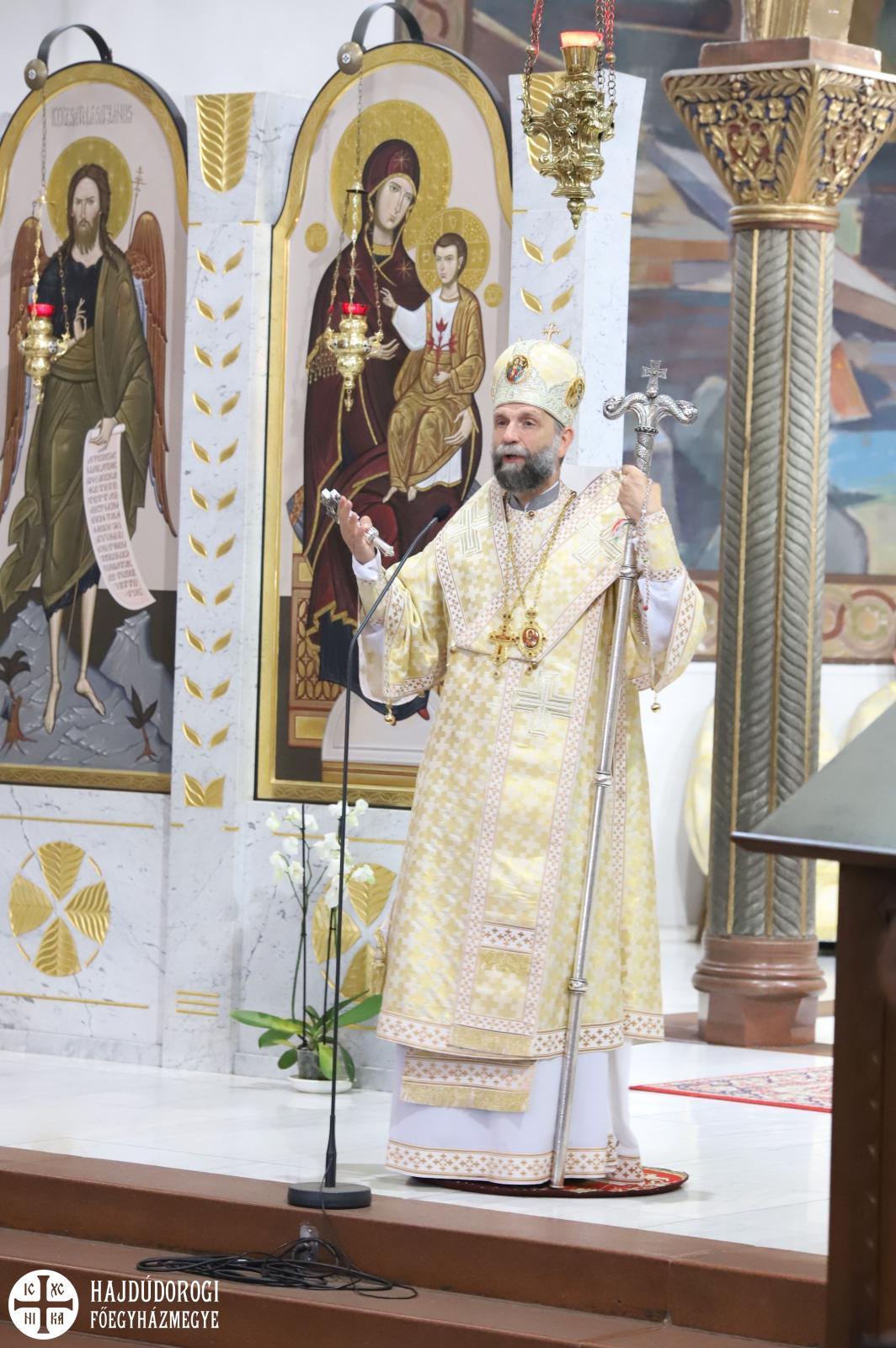 A tanítás végén emlékezett meg a főpásztor a jeles évfordulóról, és ennek kapcsán tette föl a kérdést, hogy vajon görögkatolikus egyházunkról elmondható-e, hogy ez 110 éves emelkedés? A kérdést nyitva hagyta Fülöp metropolita, és inkább arra kérte a paptestvéreket és a híveket tekintsenek előre: Egyházunk akkor fog emelkedni, ha annak tagjai emelkednek. Így aztán nemcsak biztatást kapunk arra, hogy az emberi természetünket az isteni természet fölemelte az égbe, hanem egyfajta feladatot is, hogy emeljük önmagunkat és egymást, a ránk bízottakat: a gyermekeket, a diákokat, a munkatársakat, az általunk gondozottakat, a híveinket. Persze ez csak úgy lehetséges, ha a Szentlélek erejéből mi is emelkedett lelkületűek leszünk. Adja Isten, hogy rajtunk keresztül tudjon továbbemelkedni görögkatolikus egyházunk! – zárult a prédikáció.