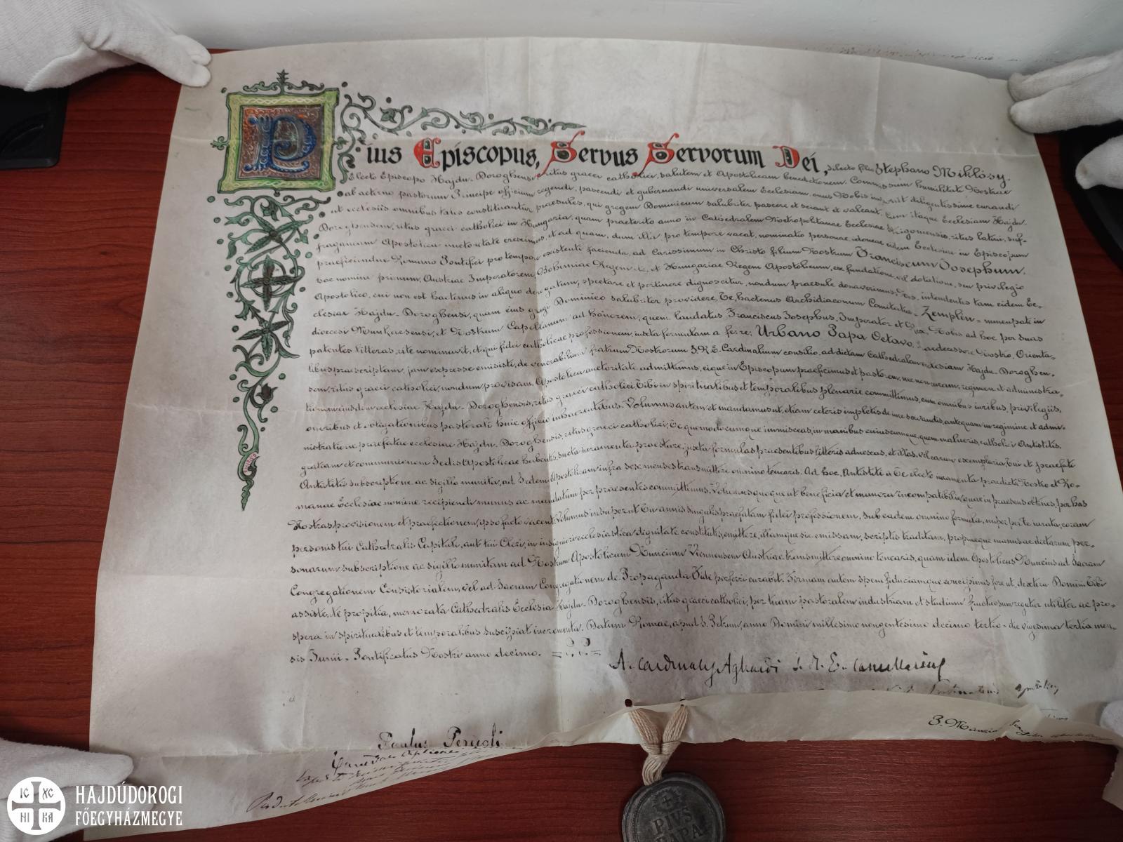 Miklósy István pápai kinevezése (forrás: Görögkatolikus Püspöki Levéltár)