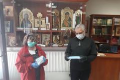 A Rózsák terei egyházközség vezetőinek nagy örömére múlt héten ezer darab sebészeti maszkot kaptak adományba a Rapidus Optika vezetőjétől, Szalay Szabolcstól.