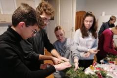 A közel kétórás munka alatt egy-egy család több koszorút és készített, ezzel kedveskedve nagyszülőknek, rokonoknak, barátoknak. A program után a templomba mentünk át, ahol Szaplonczay Miklós atya értékes gondolataival gazdagította a résztvevőket, majd az ünnepi vecsernye után megszentelte a koszorúkat. Az imádság után a családok boldogan vitték haza a szentelményeket, hogy otthonaikban az adventi koszorú gyertya fényénél imádkozhassanak önmagukért és szeretteikért.