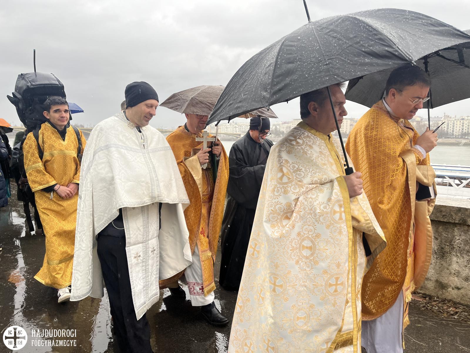 A görögkatolikusok idén is megszentelték hazánk legnagyobb folyóját. Jaczkó Sándor ezzel bocsátotta útnak a bőrig ázott, de szívükben felfűtött híveket: “Bolygónkon csak néhány olyan különleges, mondhatnánk nemzetközi folyó van, amely ekkora jelentőséggel bír, mint a Duna Európa és különösen hazánk számára. Ha egy maréknyi víz képes arcunkat megtisztítani bármilyen kosztól, akkor egy megszentelt folyó, a föld megszentelt vízháztartása az Isten kezében milyen csodára alkalmas? A Jordán folyóban megjelent teljes Szentháromság szentelje meg ma életünket, családjainkat és otthonainkat is.”