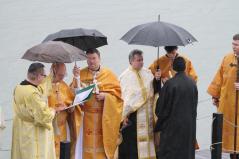 A Duna megszenteléséhez a szakadó eső ellenére lelkesen, énekelve, imádkozva vonultak a hívek. Dr. Jaczkó Sándor helynök atya prédikációjának első felében a szentéletű, ugyanakkor hányatott sorsú Szofrón pátriárka a szentelési szertartásban elhangzott költeményéről elmélkedett.