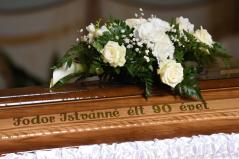 „Elköszönünk attól a tisztelendő asszonytól, akinek nemcsak öröm volt az élete, hanem nehézség is, hiszen 18 évesen elvesztette az édesapját, menekülnie kellett a háború elől, a család mindenét elveszítette, hogy utána kétkezi munkával hozzanak rendbe egy életet. Elköszönünk attól a tisztelendő asszonytól, aki úgy lett anya, hogy nem vonta soha kétségbe, hogy amit kap az Istentől az a legnagyobb ajándék. Elköszönünk attól a tisztelendő asszonytól, akinek mindig, mindent megelőzve volt fontos az Egyház és az egyházközség élete: az ünnepek, a búcsúk, a templom és mindaz, ami itt, Nyírgelsén és ahol szolgáltak, legtöbbet Létán, körülvette őket. De mielőtt végleg elköszönnénk, először köszönjük is meg sok mindent.”