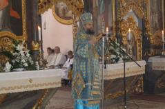 A homíliát érsek-metropolita atya az Istenszülő bevezetése a templomba ünneppel kapcsolatban tartotta. Prédikációjában felvetette a kérdést, hogy őseinket vajon mi vezethette arra, hogy erre az ünnepre szenteljék fel a templomot, hiszen nem találunk róla leírást a Szentírásban, az Újszövetségben. Az ősegyházban viszont nagyon korán elterjedt a Mária-tisztelet, Mária szerepének a jelentősége. Az apokrif irat alapján került előtérbe gyermekségtörténete, amelyből tudjuk, hogy Joachimnak és Annának öregségére született meg a kicsiny leányka, akit három éves korában vittek el a templomba és rögtön úgy érezte, hogy neki ott is van a helye. Kifejezhette a vágyát a szülők felé, akik szintén azzal a szándékkal mentek a templomba, hogy felajánlják a gyermeket, de ő is jól érezte magát Isten házában, és ott maradt, ott nőtt föl, ott készült föl a házasságra.