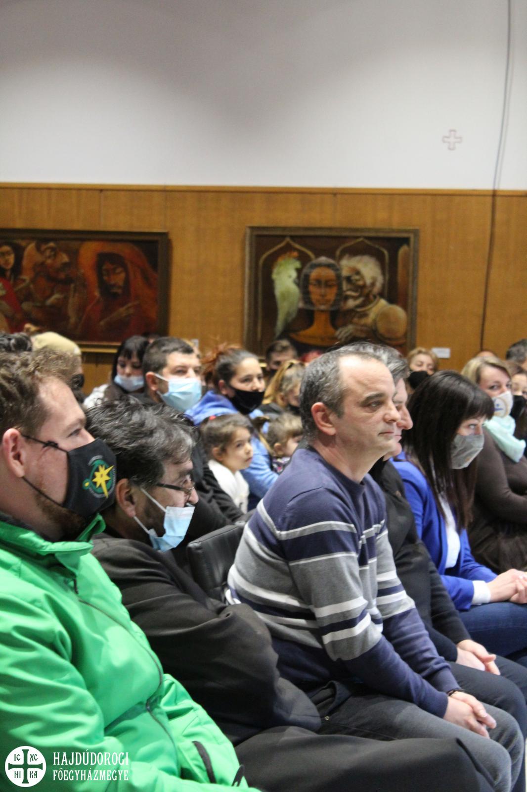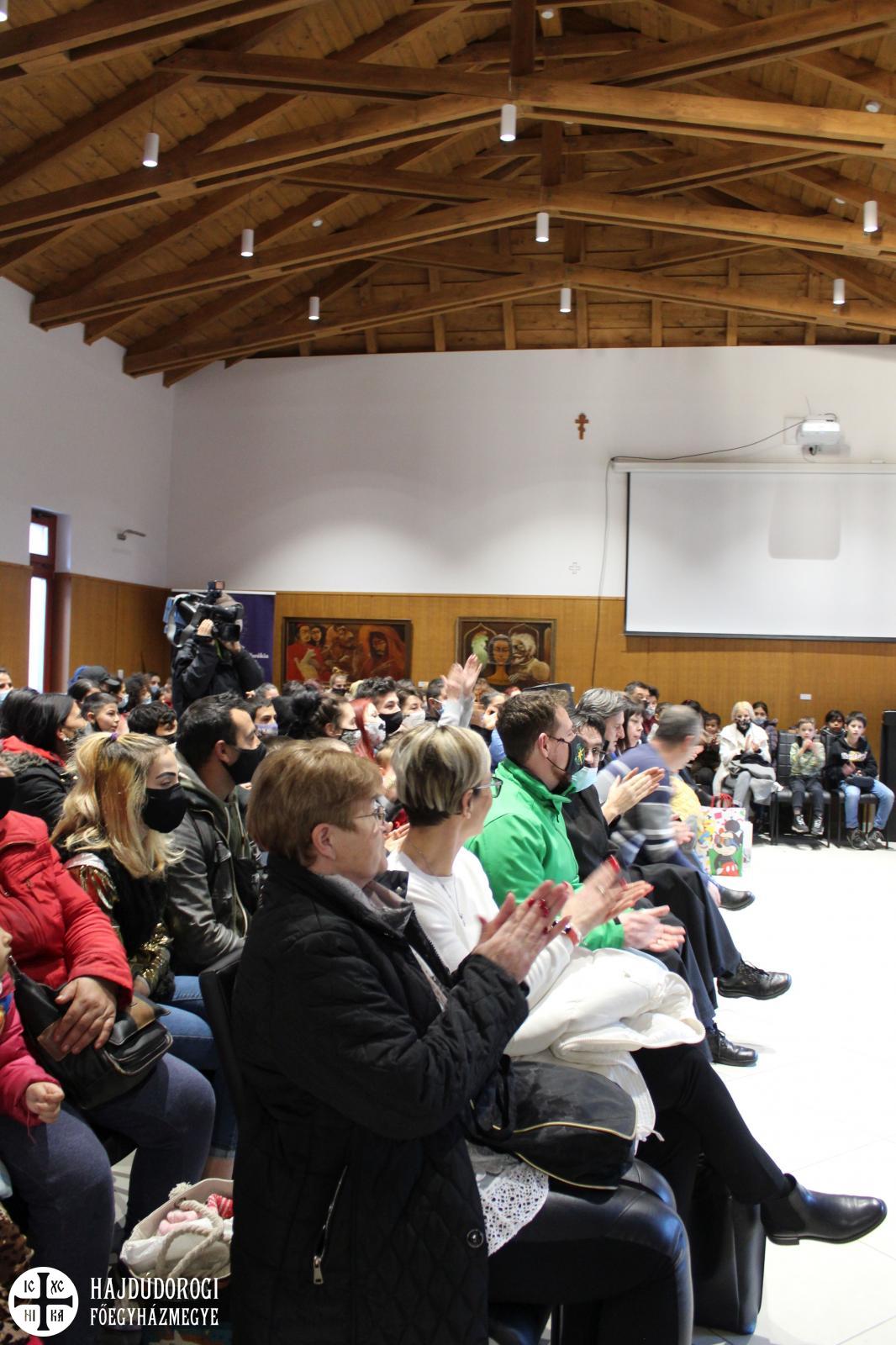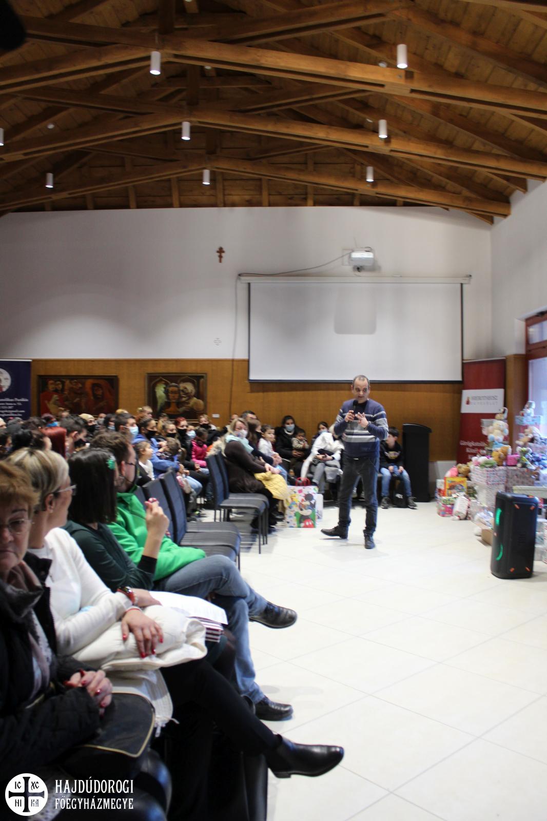 – Ezek a pillanatok mindig visszaadnak valamit a gyerekkorunkból. Már a sokadik alkalommal vagyunk itt és jó látni, hogy mindenkinek örömet okozhatunk évről évre - hangsúlyozta Nagy Zsolt a Cívis Szociális Étkezési Központ vezetője. Mint elmondta, hagyomány náluk, hogy egy-egy ilyen alkalommal példaként bemutatják az egyik kollégájukat, így ez alkalommal a központ egyik vezetőjét mutatta be a hallgatóságnak.