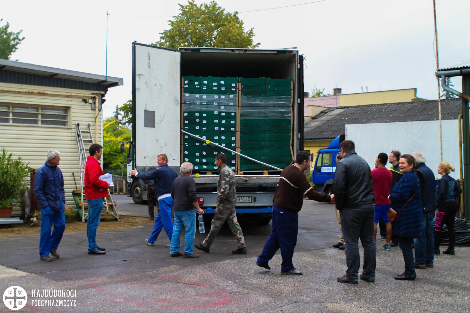 Egy kamionnyi, 1560 doboz almát vihettek haza az egyházközségi képviselők október 4-én, hogy majd szétosszák a rászoruló családok között.