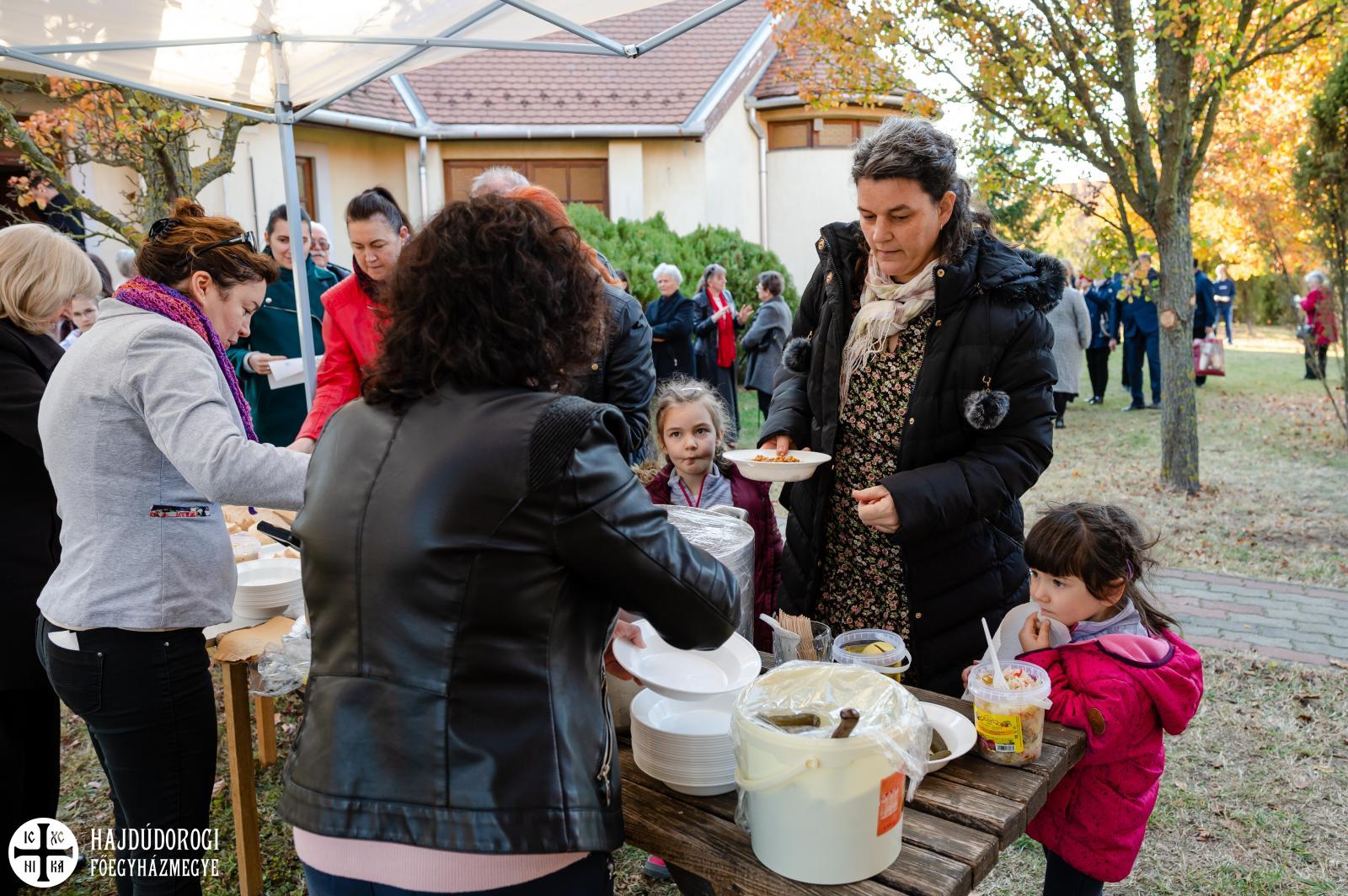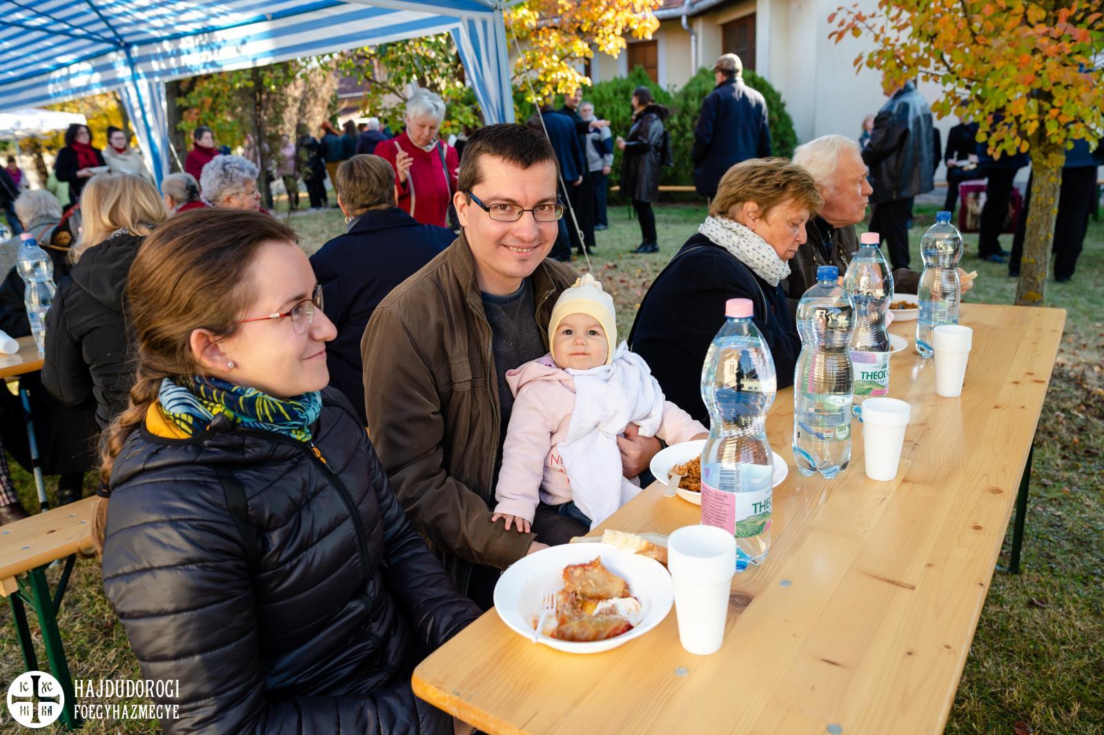 A lelki feltöltődés után a testi feltöltődés sem maradt el: a templom udvarán és a közösségi házban szeretetagapé volt, amit a jó Isten szép idővel áldott meg.