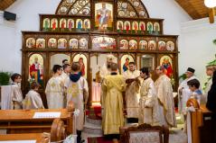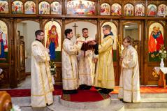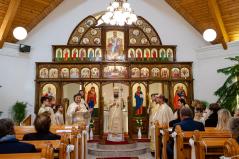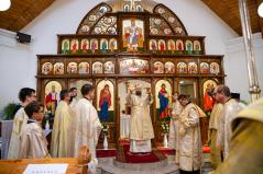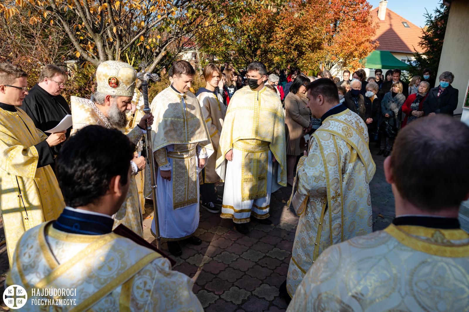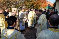 A Szent Liturgia áldása után a papság az asszisztenciával és a népes hívősereggel a templom elé vonult, ahol megszentelte és megáldotta érsek-metropolita atya Szent Péter és Szent Pál mozaikját.