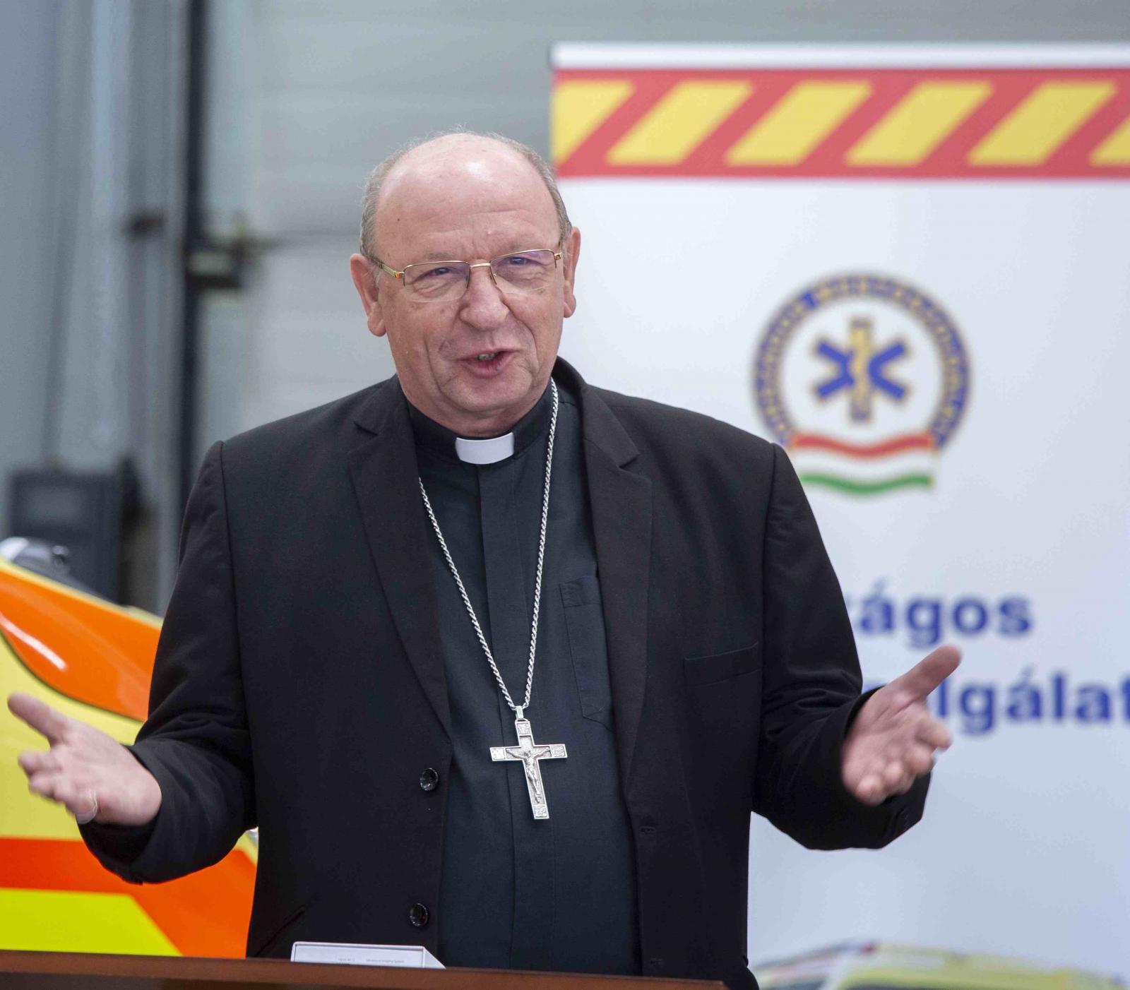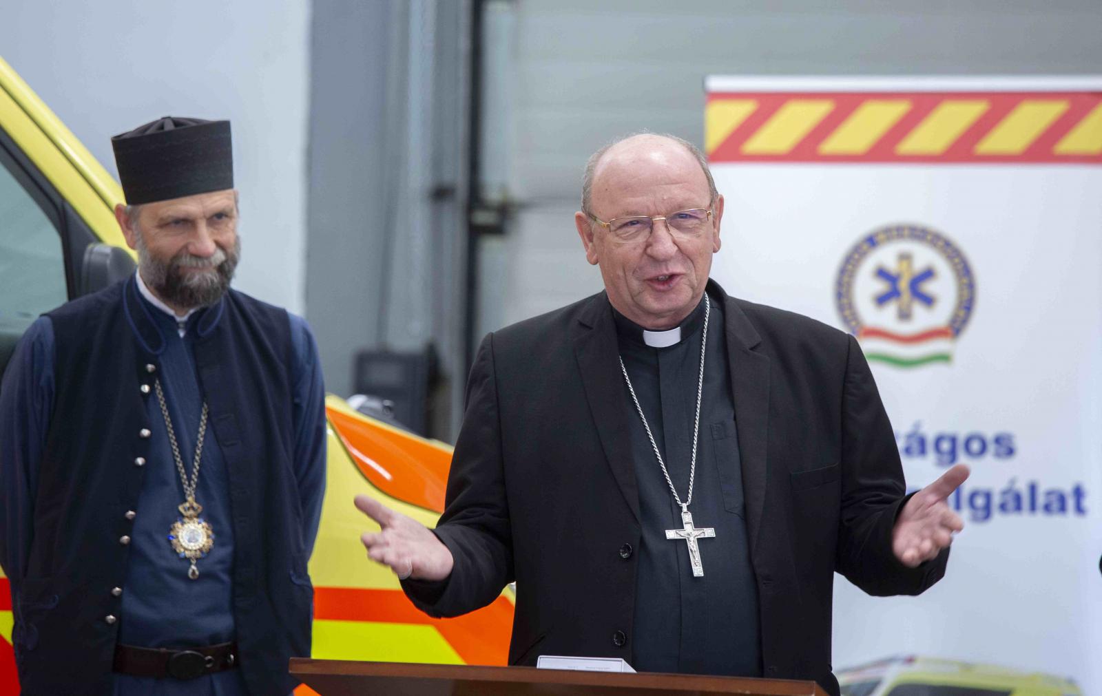 Palánki Ferenc megyéspüspök a mentőállomásra érkezve jóleső érzésként hallotta, hogy a mentős munkatársak bajtársaknak szólítják egymást. Ők tulajdonképpen a mi társain is, amikor bajba kerülünk, és kollégák, hiszen a mentősöknek az a hivatásuk, hogy az életet szolgálják. Mi is ott szeretnénk lenni az emberek mellett segítségünkkel, ha bajban vannak, és amikor örülnek, akkor mi is velük együtt örülünk – fogalmazott Ferenc püspök, majd tiszteletét fejezte ki a mentőszolgálat felé, és megköszönte munkájukat, hogy segítséget nyújtanak az embereknek.