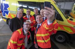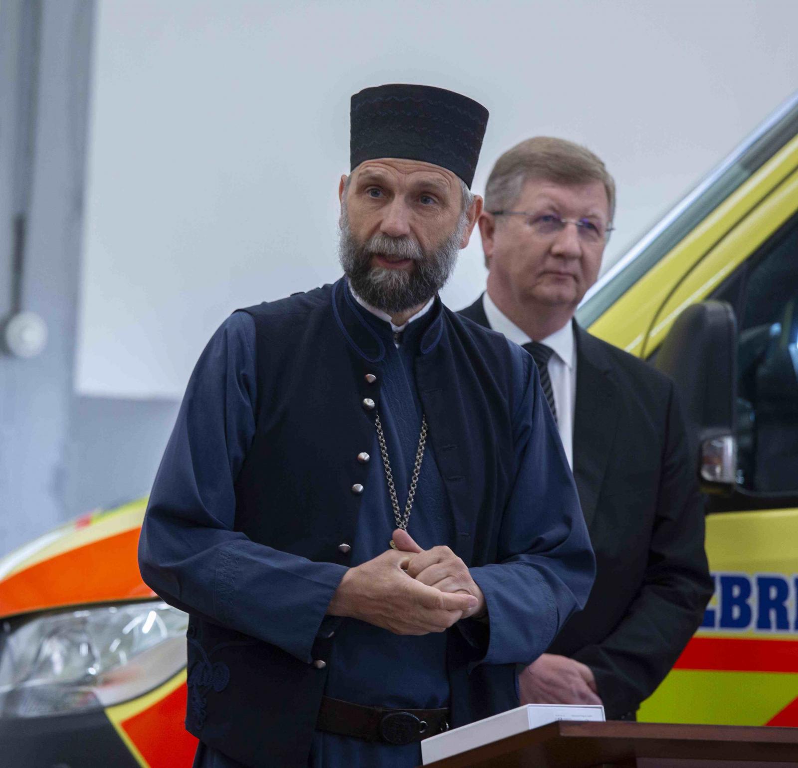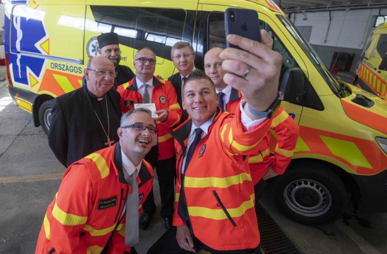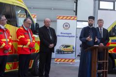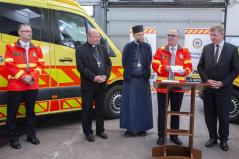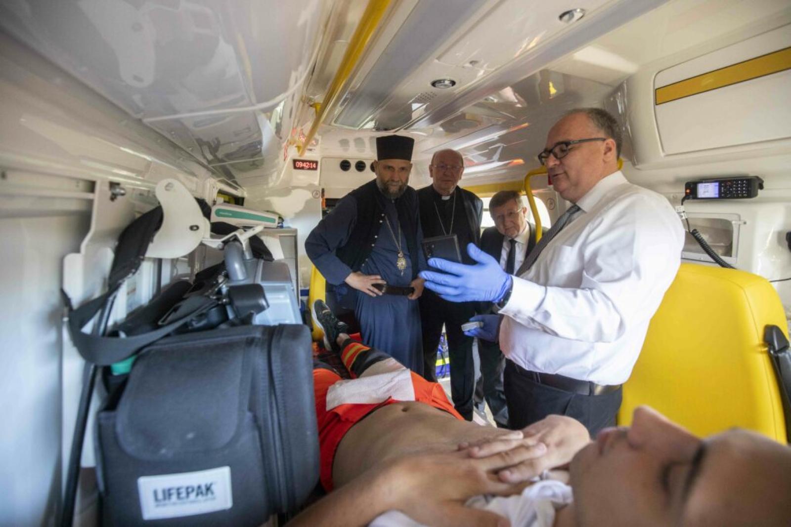 A köszöntő gondolatok után a püspökök megáldották a készüléket, majd azt a mentőkocsiban elhelyezve az érdeklődők vizsgálat közben is megtekinthették működését.