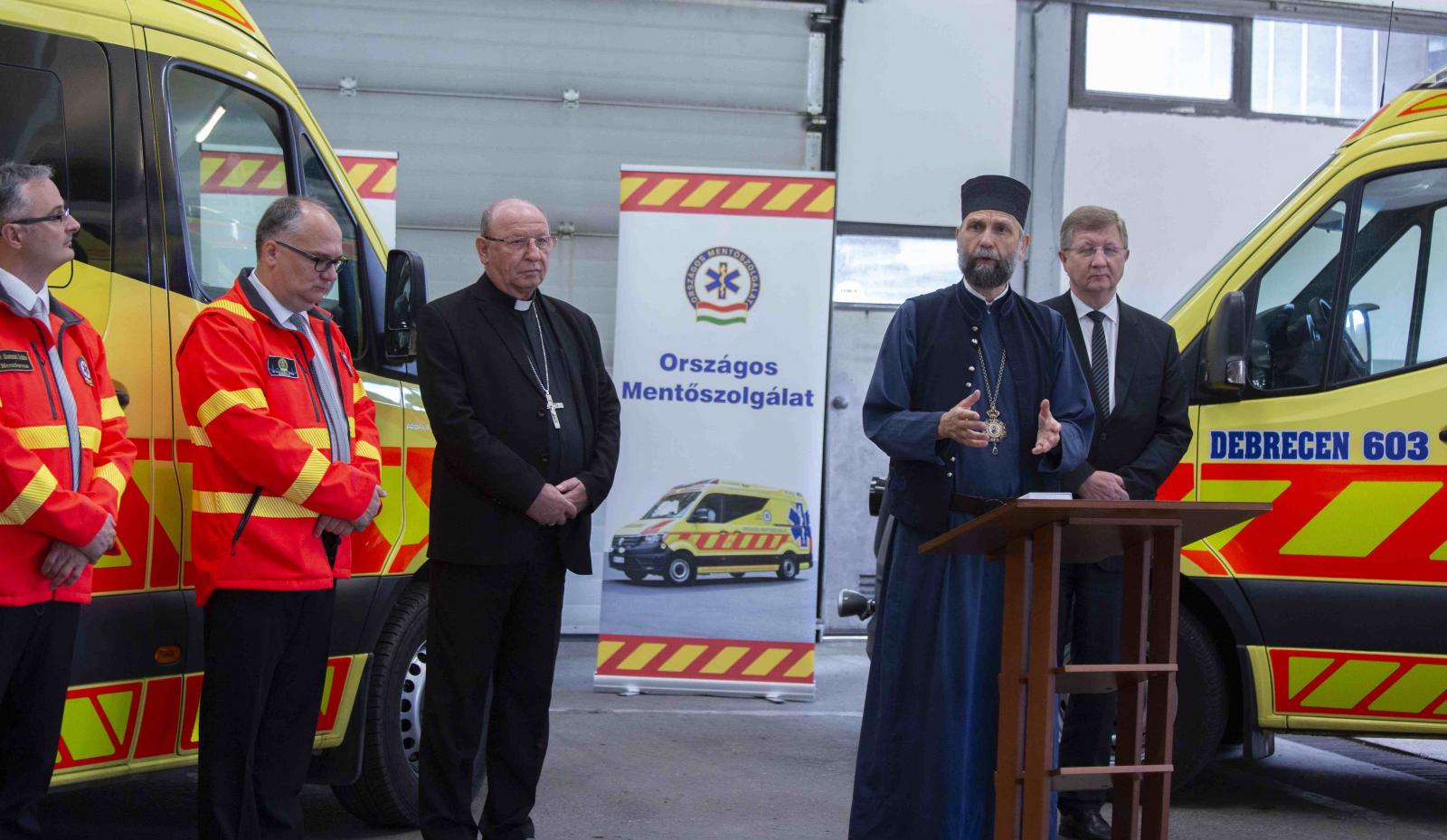 Az eseményen a történelmi egyházak képviseletében jelen volt: Palánki Ferenc debrecen-nyíregyházi megyéspüspök, Kocsis Fülöp görögkatolikus érsek, metropolita és dr. Fekete Károly, a Tiszántúli Református Egyházkerület püspöke, a mentőszolgálat képviseletében pedig: dr. Korcsmáros Ferenc regionális igazgató, dr. Szatmári Zoltán regionális igazgatóhelyettes, Petrik Tamás vezető mentőtiszt, Ménes Dávid állomásvezető mentőtiszt, valamint a mentőállomás munkatársai.