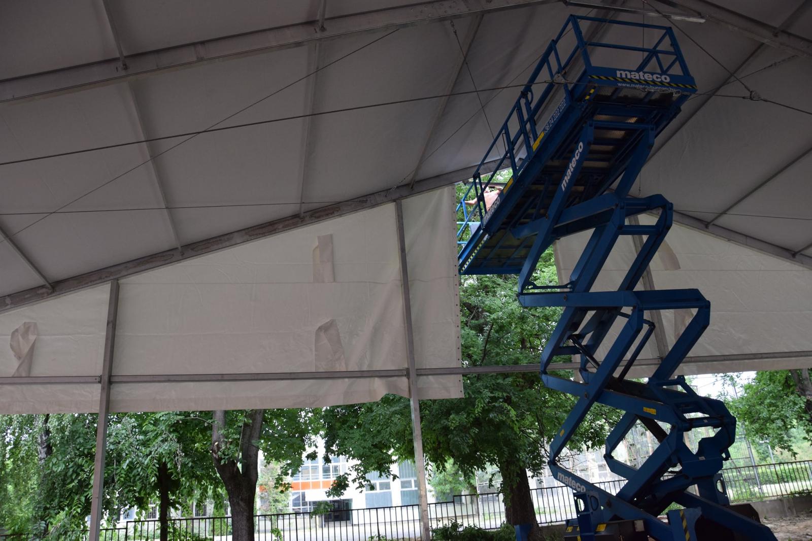 A Globál Sport Kft. szakemberei már elvégezték a labdafogó szerkezetek és a meglévő aszfaltpálya elbontását. A játékfelület különlegessége, hogy egy 26x45 méteres alumínium vázszerkezetes sátor került a burkolat fölé komplett világítással. A sátor hosszanti oldalain a ponyvák elhúzhatóak, így a játéktér megnyitható az udvar irányába.