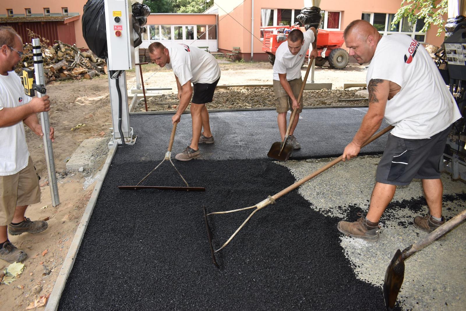 A Globál Sport Kft. saját kivitelezésben építi a sportpálya alépítményét és az aszfalt felületet is, utóbbihoz 110 tonnát használnak fel.