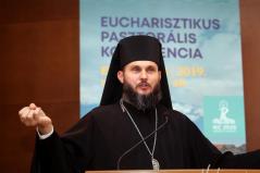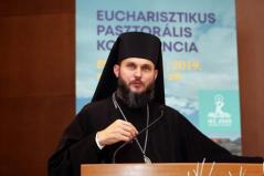 Szocska A. Ábel előadásában az elsőáldoztatásról, illetve a görögkatolikusoknál szokásos kisdedáldoztatásról beszélt. Mint mondta, az 1646-os ungvári unió az egyesülés egyik feltételeként hangsúlyozta, hogy a Görög Egyház rítusa sértetlen marad, azt továbbra is szabadon végezhetik. Ez azért fontos, mert a Görög Egyház ősi rítusában a keresztség, a bérmálás és a Szent Eucharisztia összetartozott. Igaz, napjainkra ezek sok esetben különváltak, s hasonlóan a római katolikusokhoz elsőáldozásra való felkészítést tartanak a fiataloknak a görögkatolikusok is. Ez azonban csak a 20. század elejétől vált gyakorlattá a Görögkatolikus Egyházban, előtte ragaszkodtak a szentségek csecsemőknek való kiszolgáltatásához. Az elmúlt században vált szokássá az elsőáldozás, a keresztút és a szentségimádás is, római katolikus mintára, ezek az ősi görög rítusban nem voltak jelen. A 21. században Kocsis Fülöp érsek-metropolita kezdte az ősi hagyományokat feleleveníteni, a Görögkatolikus Egyház mindennapjainak ismét részévé tenni. Szocska Ábel kiemelte, hogy a görögkatolikusoknál így meg lehet találni az ősi rítust és a római katolikus szokásokat is. Az ősi rítushoz való visszatérés egybehangzik a Szentszék azon kérésével, miszerint a görögkatolikusok fedezzék fel újra hagyományaikat.