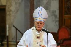 Homíliájában arról beszélt, hogy az elhangzott evangéliumi rész – mely az elpusztult Jeruzsálem és a világ végének perspektívájába állítja a híveket – elgondolkodtat mindenkit az időről. Az idő nem értelmetlen folyamat számunkra, hanem Isten üdvözítő tervének az ideje, folyamat, melynek kezdete és célja van. A cél Krisztus. Figyelmeztet arra is, hogy a történelem útján járó Egyház sokszor – napjainkban is – sokfelé üldöztetésnek van kitéve.