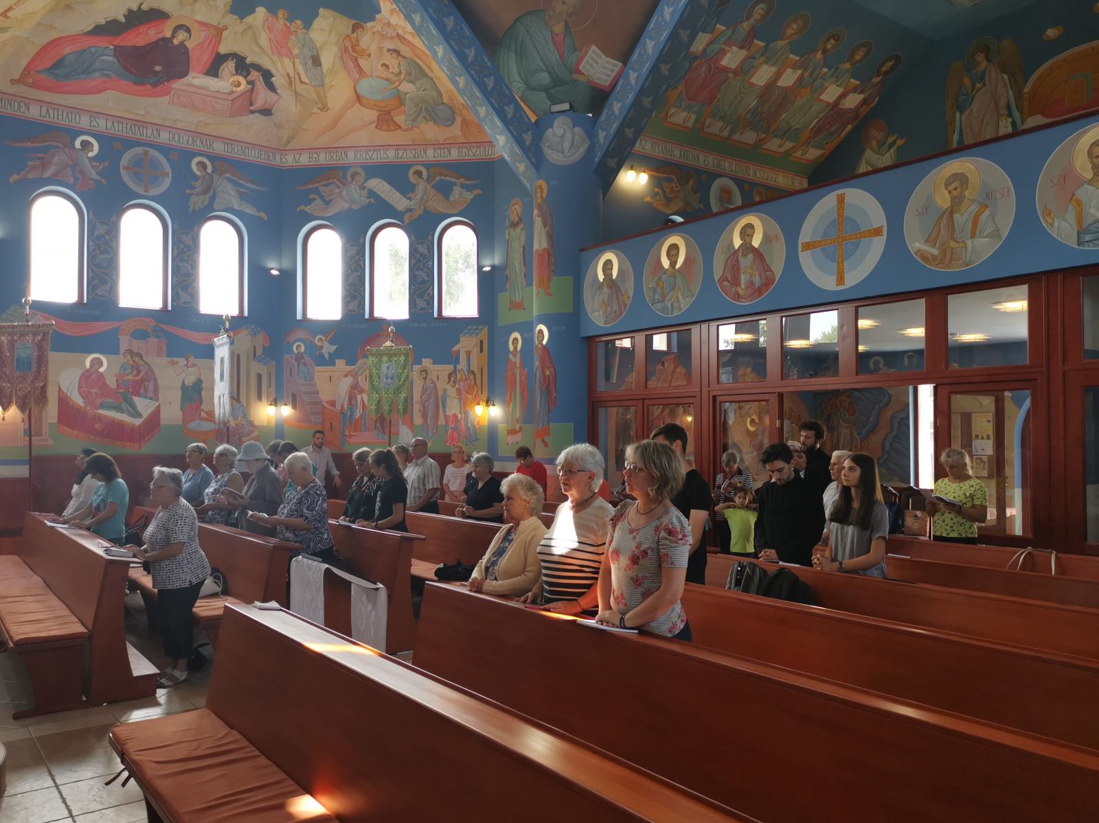 Imádsággal és beszélgetéssel telt a jó néhány órás út, aminek első állomása Gödöllő volt. Az itteni templom mondható az újonnan épített templomok közül az egyik legszebbnek, felemelő érzés volt ilyen szép helyen elimádkozni a parakliszt Kapin István parókus atya vezetésével.