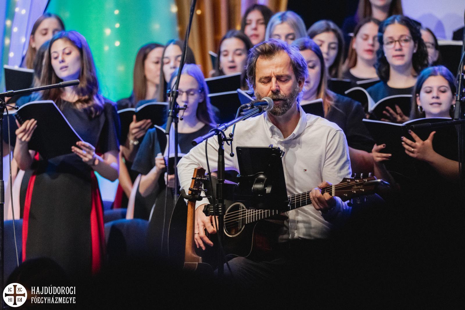 Igen. Ez is egy olyan dolog, ami izgatta a fantáziámat, hogy miként lehet fuzionálni a különféle művészeteket. Ennek a gondolata akkor fogalmazódott meg bennem először, amikor a város felkért néhány éve, hogy rendezzek meg egy október 23-i ünnepséget. Felkértem Áfra János költőt, hogy írjon egy szöveget egy fiatalember szemszögéből, aki részt vesz a forradalomban és elmondja belülről hogyan éli meg. A kórus meg aláénekel. Csodálatos élmény volt a végeredmény. A kortárs irodalomért egyébként is rajongok, a könnyűzene kapcsán pedig Ölveti Matyi barátom miatt vagyok naprakész.