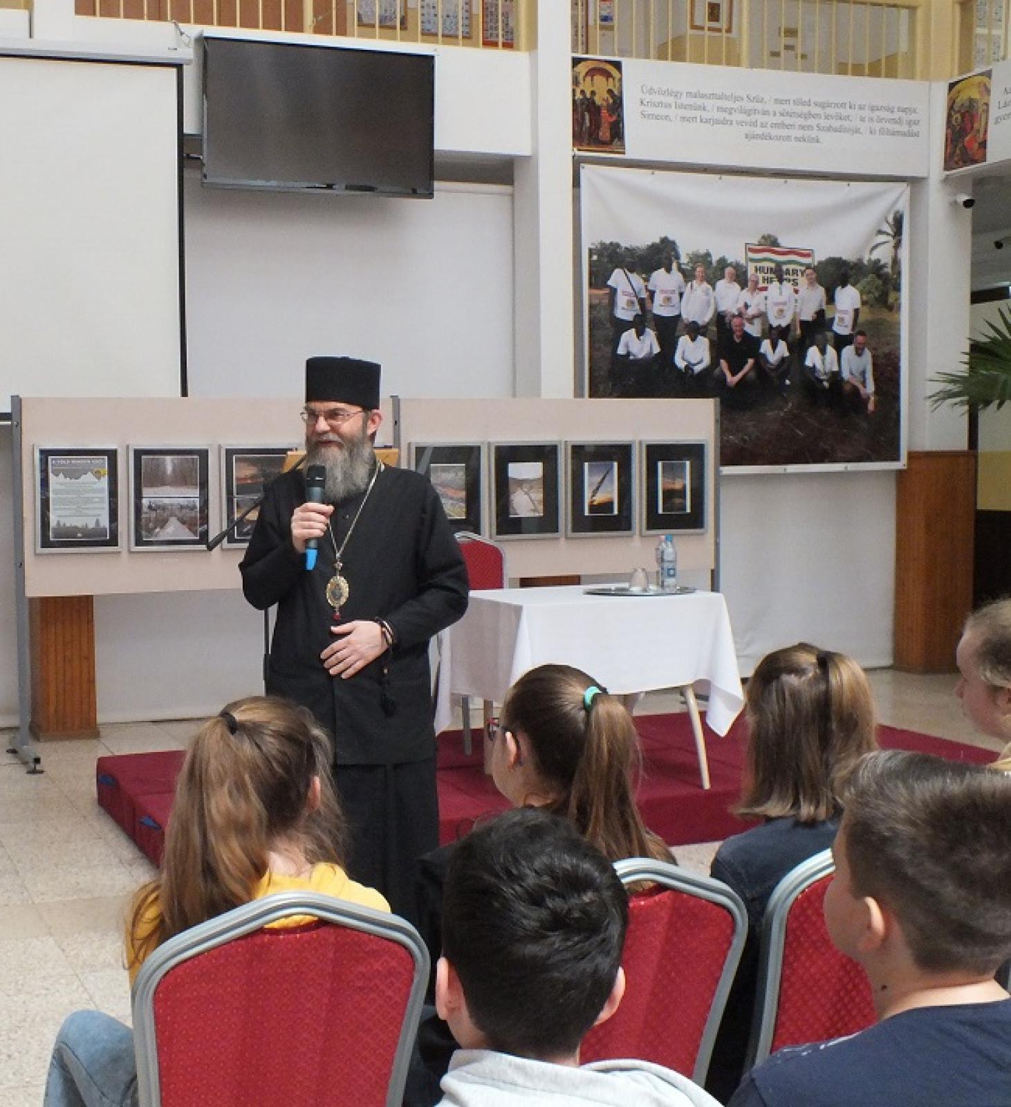 Amíg megsült a kenyér, a főpásztor a 7–8. évfolyamos tanulóknak tartott rövid elmélkedést. Előadásában párhuzamot vont a proszfora készítése, az alapanyagok összegyúrása és az isteni tervek között: mi is tészta vagyunk a Jóisten kezében, amit Ő gyúr meg. Életünkben mindennek megvan a maga helye, és helyére kerül a Jóisten gyúró keze nyomán. De akár ha kemencébe kerülünk, és úgy érezzük, megégetjük magunkat, mindez kell ahhoz, hogy „ízletes cipóvá váljunk”. Mint ahogy a cipó is úgy teljesíti be a „küldetését”, hogy szétoszlik az emberek között, akik elfogyasztják, úgy Krisztus Urunk is önmagát táplálékul adta az Eucharisztiában és minket táplál. Előadása végén a főpásztor hangsúlyozta: mi, emberek is törekedjünk arra, hogy odaadjuk magunkat másoknak, hiszen akkor teljesedik be hivatásunk, akkor tudjuk azt az örömöt, amit belénk gyúrt a Jóisten, továbbadni embertársainknak.