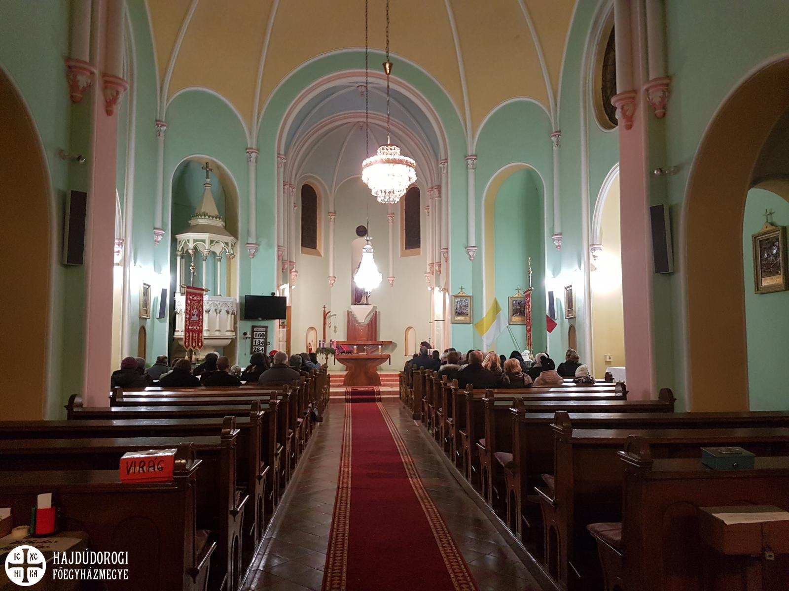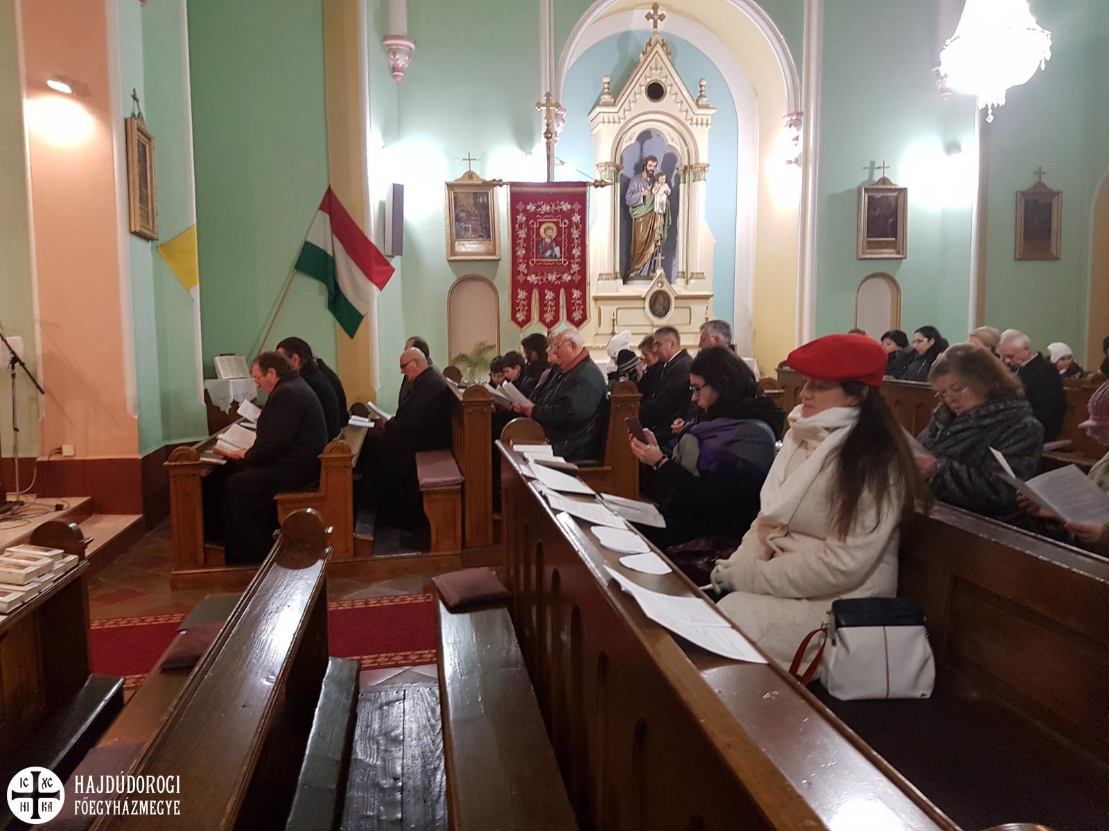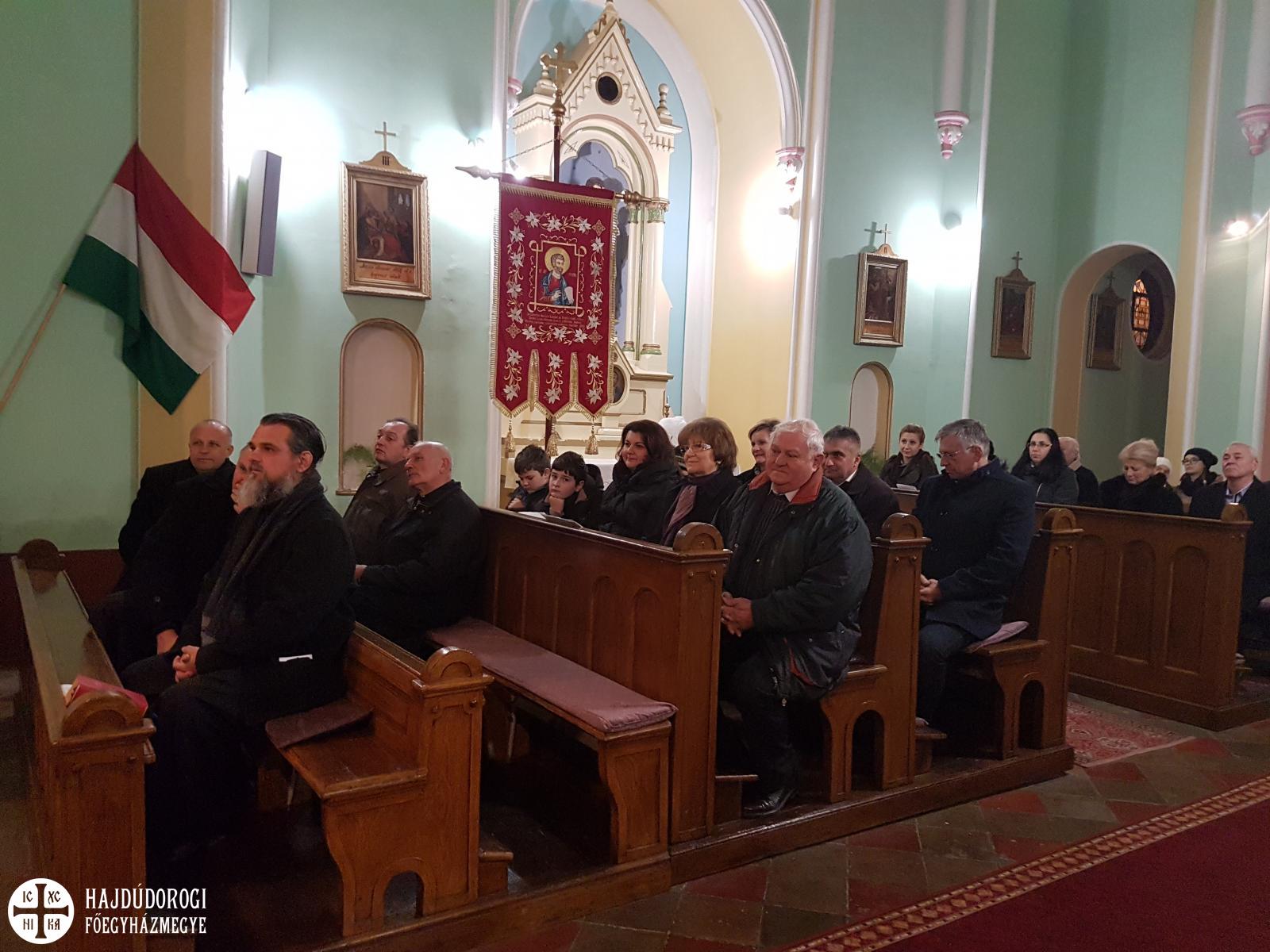 Berettyóújfalu jelenleg a pocsaji egyházközség filiája, Zolcsák Miklós pocsaji parókus havi két alkalommal végez Liturgiát a Jézus Szíve római katolikus templomban. A mostani esti zsolozsmát számos egyházkerületi atya is megtisztelte jelenlétével. Érsek-metropolita atya köszöntő beszédében hangsúlyozta a római katolikus egyház által december 8-án ünnepelt Szűz Mária szeplőtelen fogantatása, valamint az egy nappal később, december 9-én a görögkatolikus egyház által ünnepelt Szent Anna csodálatos foganása eseményeinek szimbolikus jelentőségét, hisz azon az estén görögkatolikus hívekként a római templomban is egyfajta átmenet részesei lehettünk.
