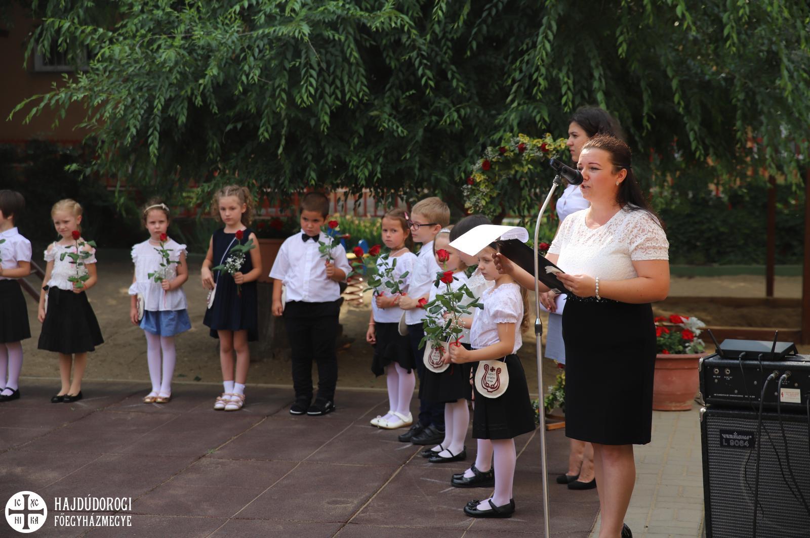 Kapusiné Szabó Csilla az óvoda vezetője is búcsúzott a gyermekektől. Felidézte a 3-4 évvel ezelőtti kezdeti nehézségeket, amiket gyermek és szülő egyaránt nehezen élt meg, hiszen az első napokban nehezen ment az elválás. De aztán szép lassan beletanultak az ovis-létbe a kicsik.