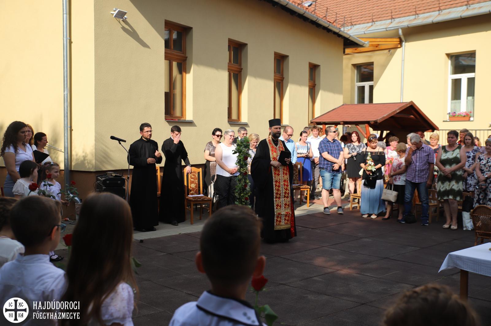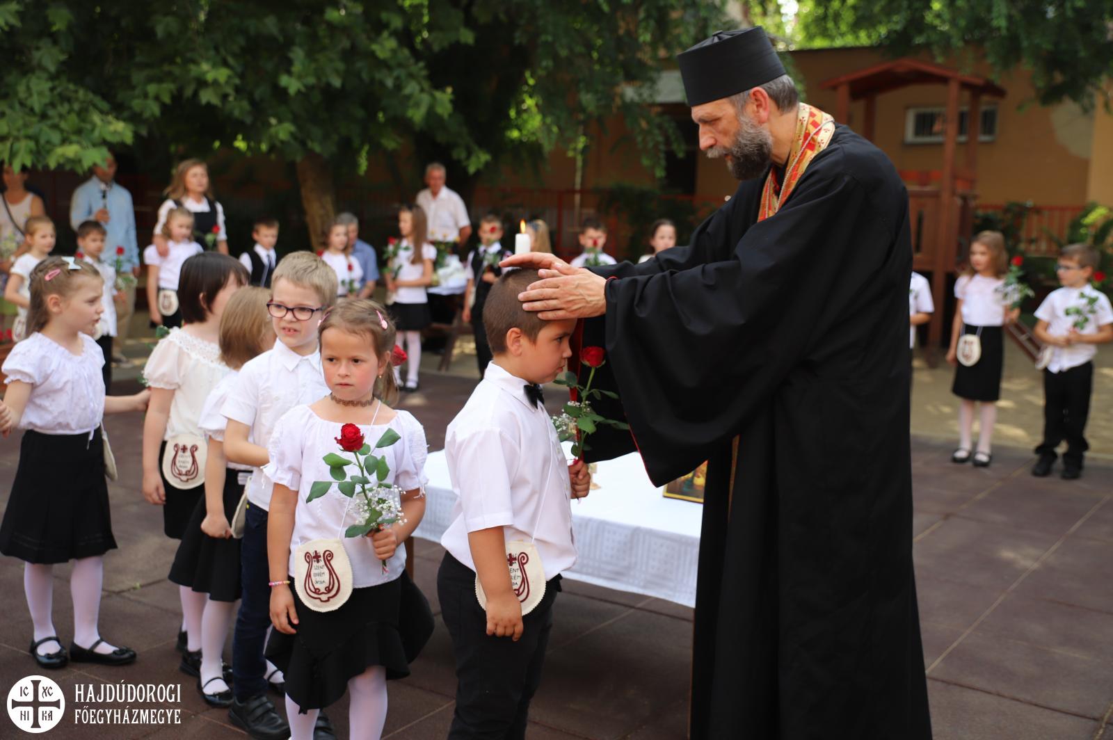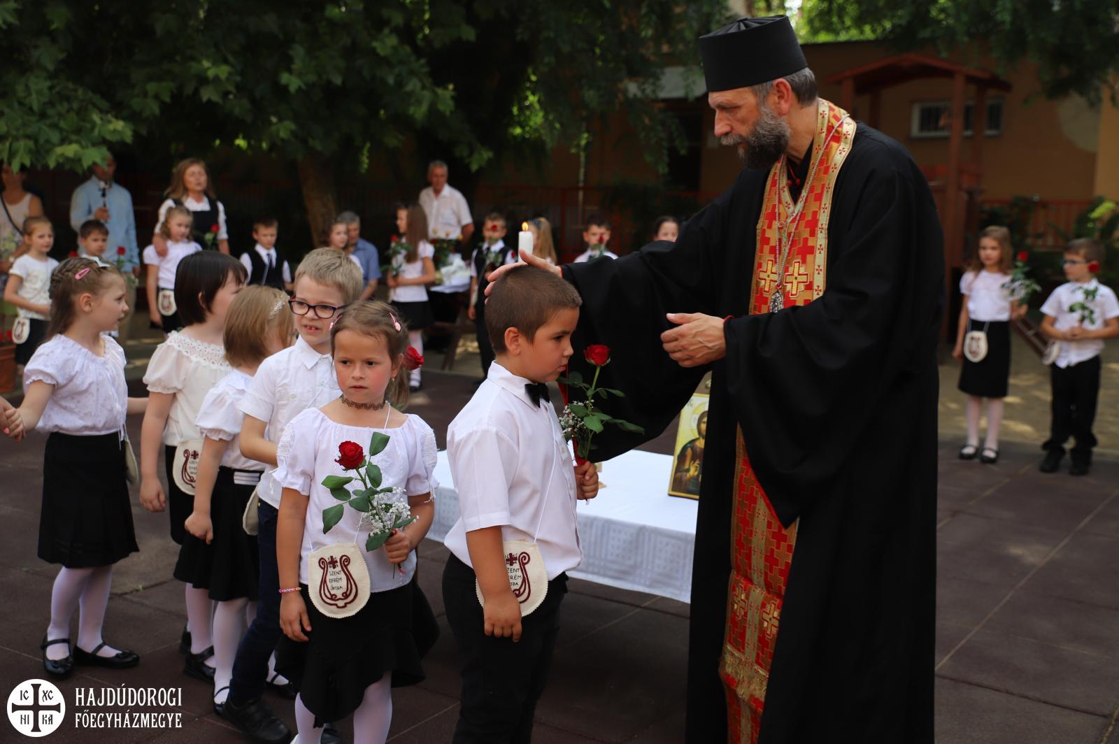 A köszöntők után elsőként az itt maradó ovisok búcsúztak, majd a ballagók kis műsora következett, végül Kocsis Fülöp érsek-metropolita áldotta meg a gyermekeket. A főpásztor ezzel az Úr Jézus jelenlétét adta tovább illetve elmondta, hogy abban bízik: „a Szent Efrém Óvoda egy olyan intézmény, amitől életre szóló ajándékokat kapnak a gyermekek, legfőként az Úr Jézus jelenlétét.