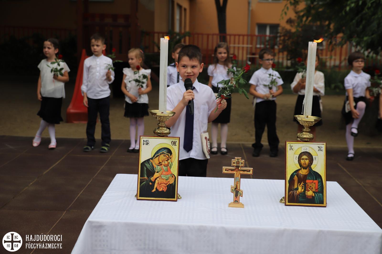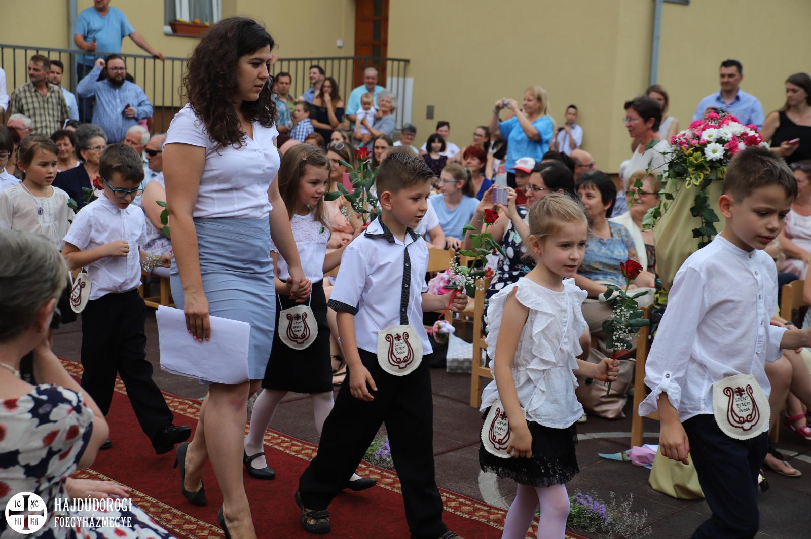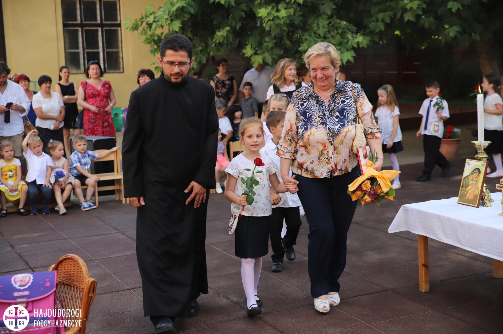 A köszöntők után elsőként az itt maradó ovisok búcsúztak, majd a ballagók kis műsora következett, végül Kocsis Fülöp érsek-metropolita áldotta meg a gyermekeket. A főpásztor ezzel az Úr Jézus jelenlétét adta tovább illetve elmondta, hogy abban bízik: „a Szent Efrém Óvoda egy olyan intézmény, amitől életre szóló ajándékokat kapnak a gyermekek, legfőként az Úr Jézus jelenlétét.