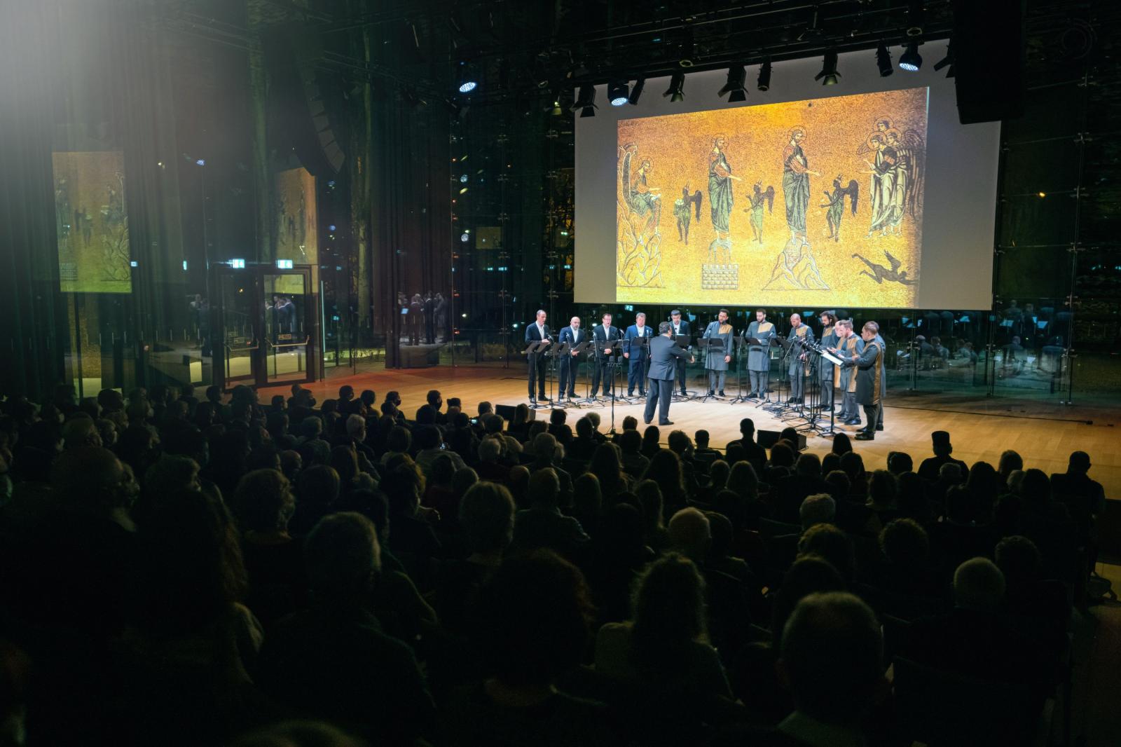 A két együttes a hangverseny végén Papp Viktor – aki a Szent Efrém legfiatalabb tagja – egyik feldolgozásával készült, zárásként pedig Dmitrij Bortnyanszkij nagyszabású kórusművét, a Te Deum-ot is énekelték egyházi szláv nyelven.