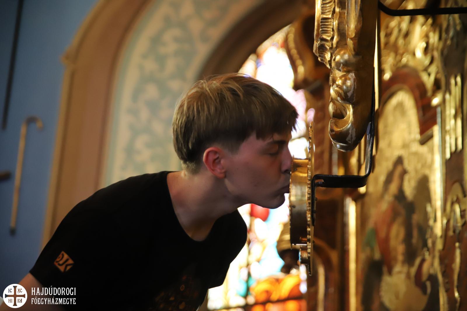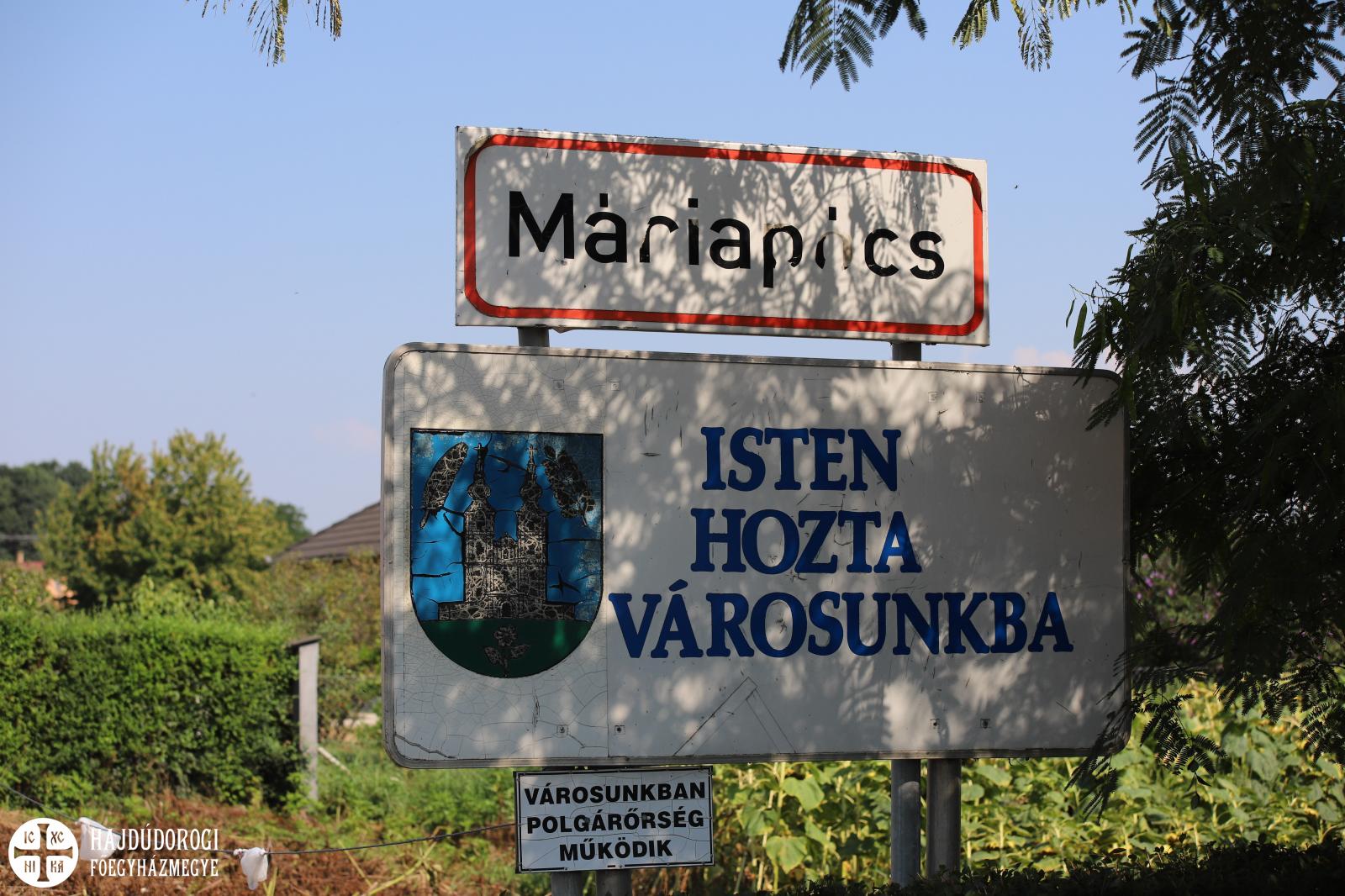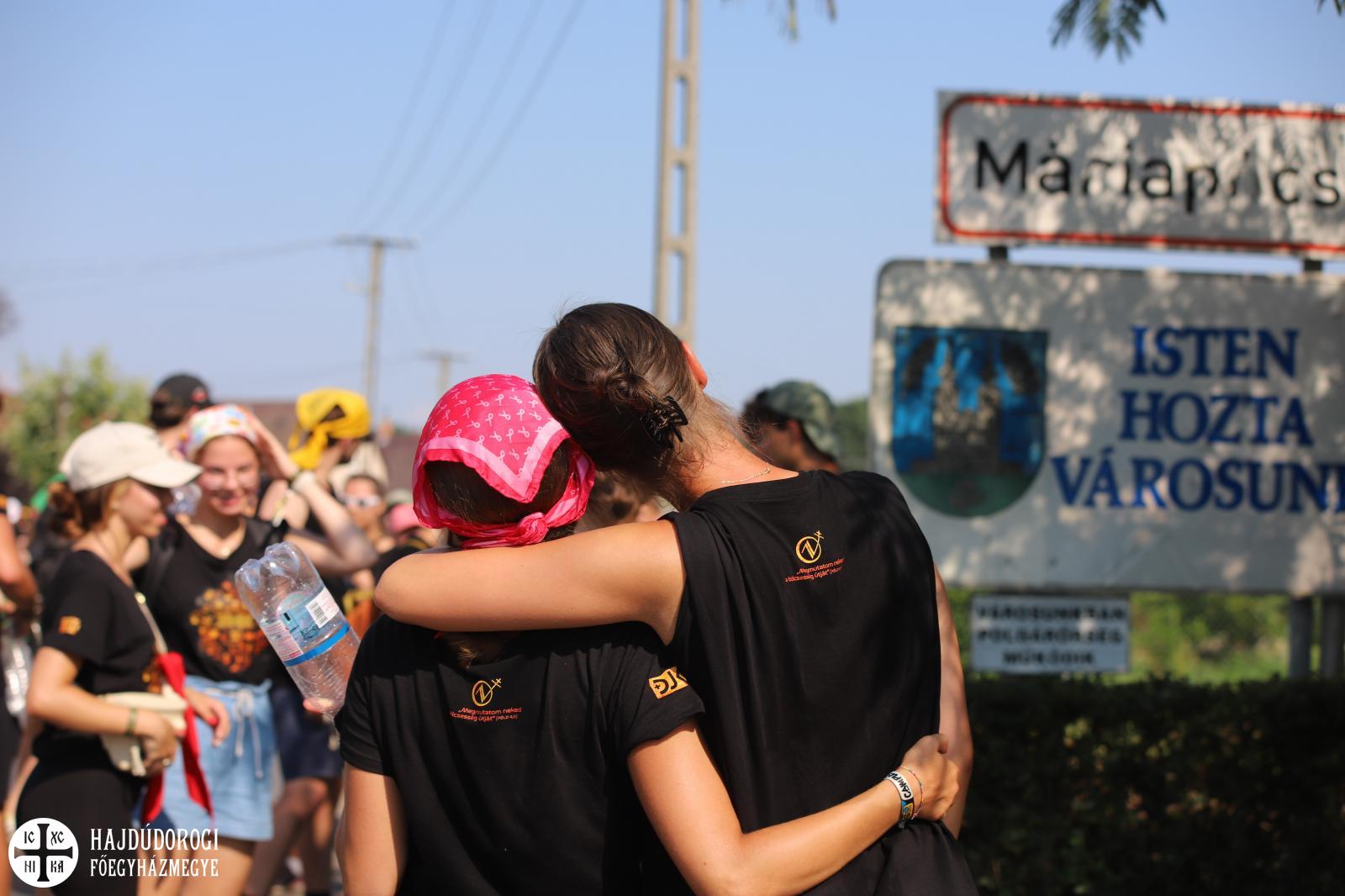Talán nincs és nem is lesz olyan népszerű fényképtéma, mint ami ifjúsági gyalogos zarándoklatunk végéhez közeledve készült szombat délután Máriapócs településtáblájánál. Gyönyörű lányok, kigyúrt fiúk, szerelmespárok, családok, nyugdíjasok, csoportok, baráti társaságok naptól égetve, bekötött lábakkal, sántán, izzadtan, megtörten, de büszkén és fölszabadultan, boldogságtól sugárzó arccal ölelkeztek a tábla előtt egy-egy fényképre. Nem hegycsúcs volt ez, nem fesztivál, nem hírességgel való találkozás, hanem az Istenszülő Szűz Mária kicsiny pócsi otthonának táblája, ami mégis hegycsúcs: zarándoklatunk, keresztény életünk magaslata; mégis fesztivál: görögkatolikus fiataljaink egész évben várt lelki fesztiválja, mégis híresség: Európa és egész görögkatolikus egyházunk csodálatos közbenjárója és pártfogója, Jézus Krisztus és a mi édesanyánk otthona. Mindezt magában hordozza egyetlen szó: Máriapócs. Ez a tábla, ez a szó feledtette a zarándokok minden testi fájdalmát, minden vízhólyagot, bokagörcsöt, égett vállat, szomjúságot, hőhullámot, s elhozta a várva-várt enyhülést, az öt nap megérdemelt gyümölcsét, a hazaérkezést. Mert a hátralévő másfél kilométeren már otthon voltunk, a bazilika távolban föltűnő sárga templomtornyai, mint az otthonunk középpontja hívogatott és benne várt a pócsi Istenszülő csodatévő ikonja.