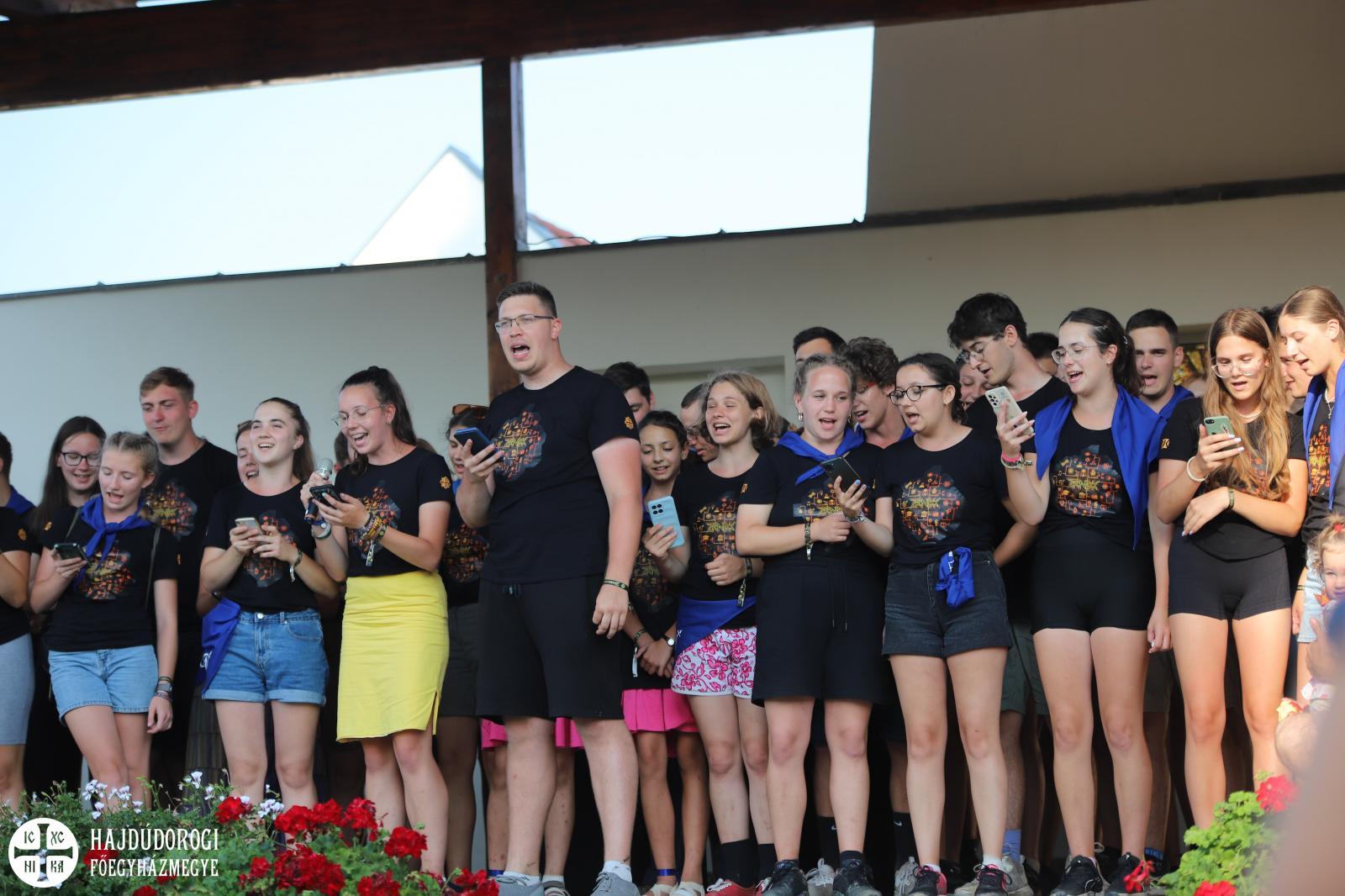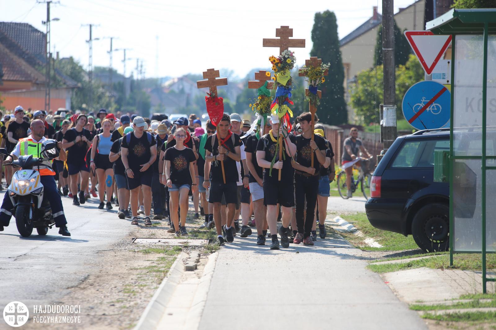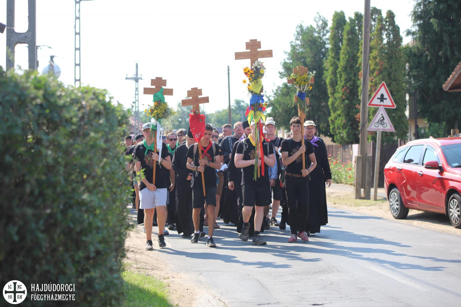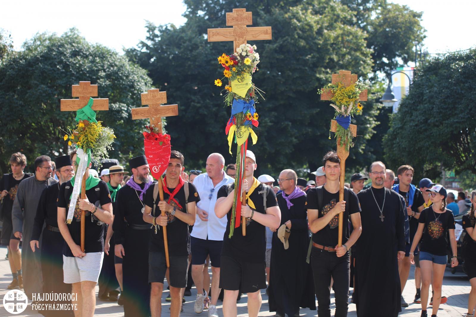 Huszonegy éve hagyomány, hogy a zarándoklat különböző színekkel jelzett csoportjai barátságos versengéssel, csipkelődéssel viseltetnek egymás iránt, a város határában azonban minden csoport keresztje egyesül, hogy különbözőségünkben is egységünket jelképezze, s így fordulnak be a Kossuth térre, így térnek be a bazilika kapuján, hogy virágokkal, zarándok-kendőkkel díszítve megpihenjenek az Istenszülő előtt. Négyszáz piros arc, nyolcszáz megfáradt, de boldog szempár tapadt a pócsi ikonra. Volt, akinek először, volt, akinek tizedszer, volt, akinek huszonegyedszer. Az élmény mégis mindenkinek ugyanaz. Lehet sporttörténelmet írni, lehet versenyeket nyerni, lehet díjakat kapni, az öt napos zarándoklat után az istenszülő ikonjához megérkezni azonban semmivel föl nem érő győzelem és jutalom.