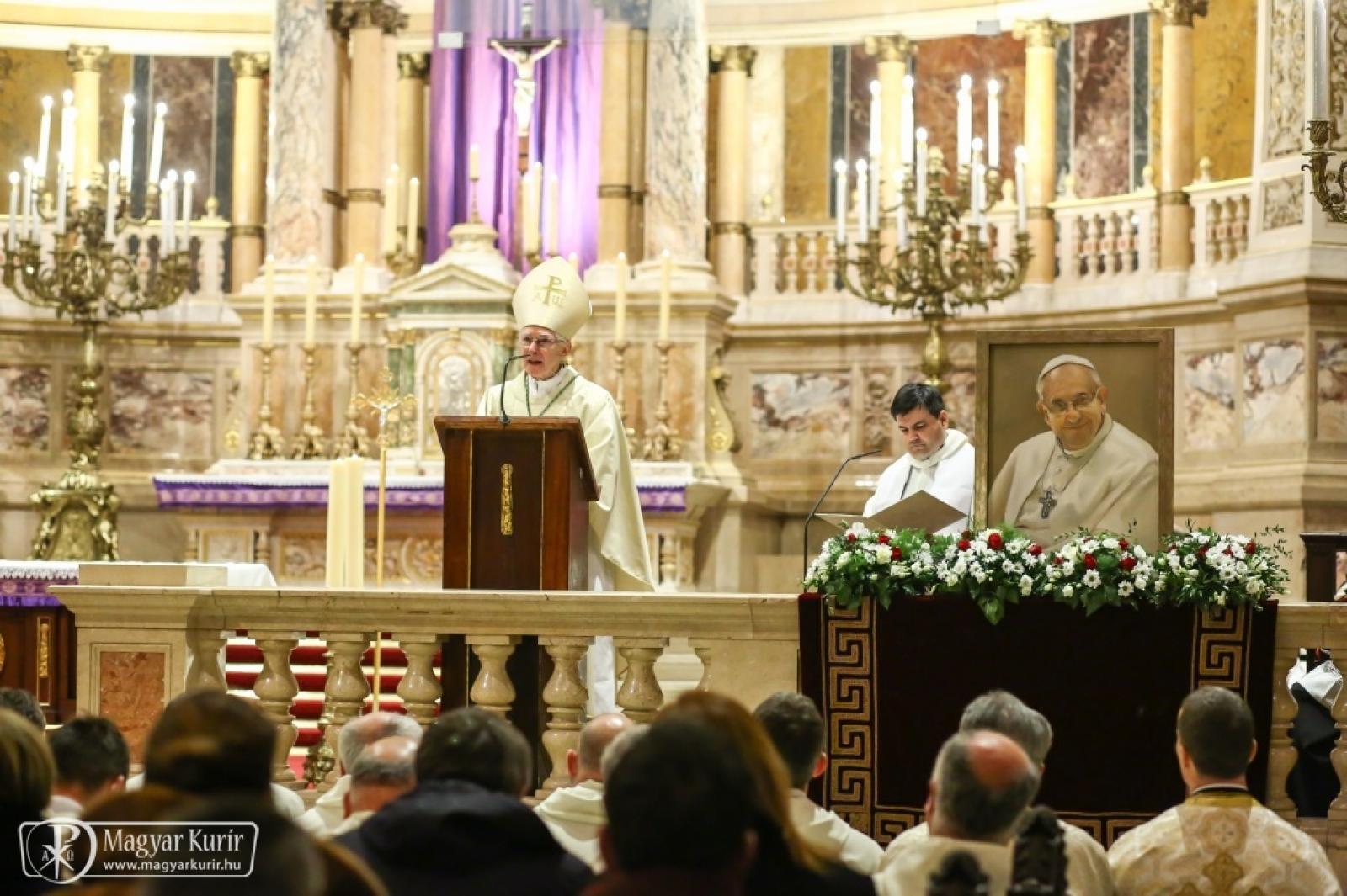 Az apostoli nuncius a szentmise elején – Szent Józsefnek, Szűz Mária jegyesének, Urunk Jézus Krisztus nevelőapjának és az egyetemes Egyház patrónusának főünnepén köszönetet mondott az Esztergom-Budapesti Főegyházmegyének, elsősorban Erdő Péter bíborosnak és Snell György segédpüspöknek, a Szent István-bazilika plébánosának, hogy együtt imádkozhatnak Budapesten abból az alkalomból, hogy hat évvel ezelőtt kezdte meg pápai szolgálatát Ferenc pápa. A pápai nuncius külön köszöntötte a kormány képviselőit és a hazánkba akkreditált diplomáciai testület tagjait, a keresztény egyházak és a zsidó közösségek képviselőit. A szentmisén együtt ünnepelt Darák Péter, a Kúria elnöke és Tarlós István főpolgármester.