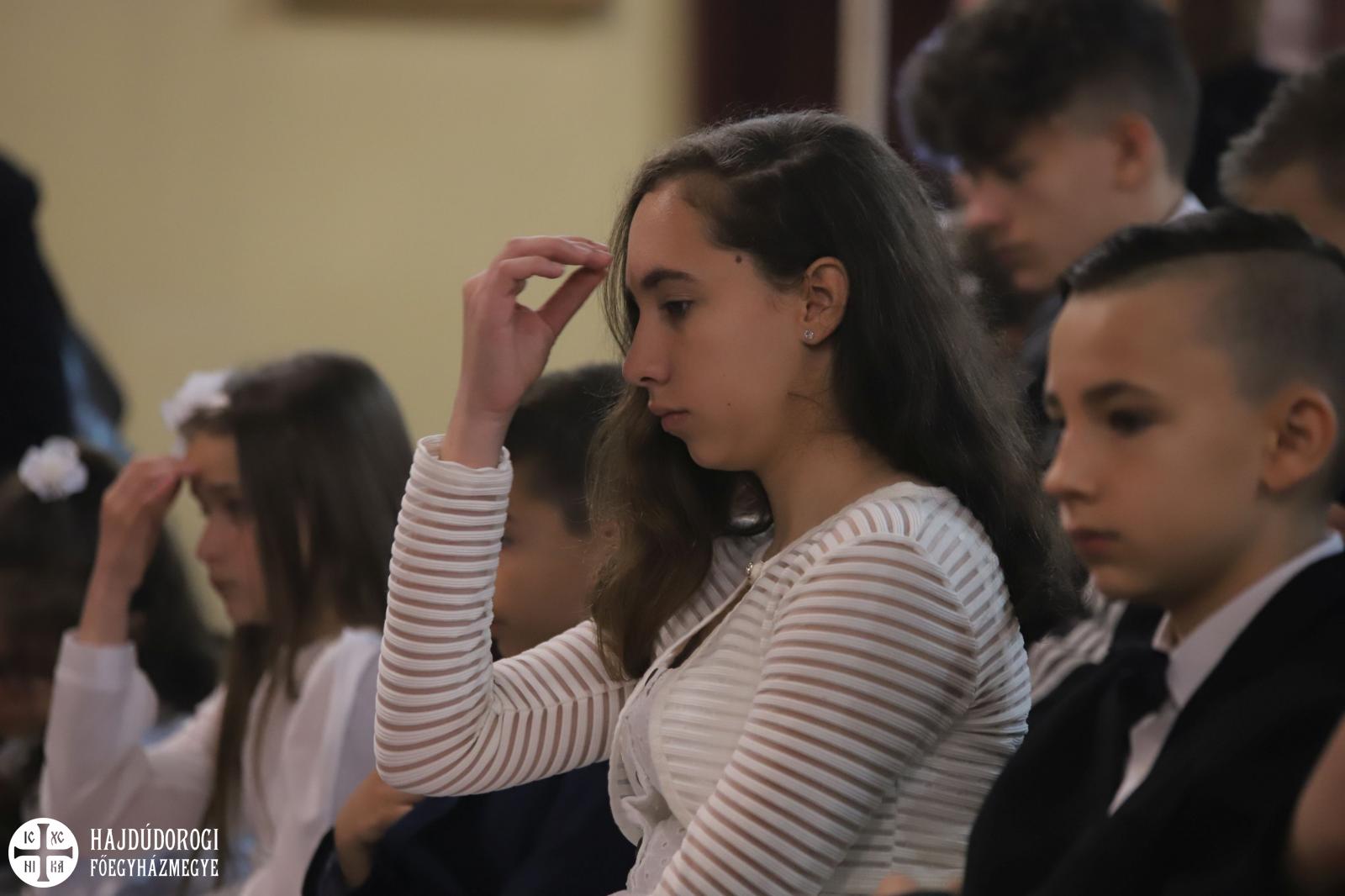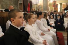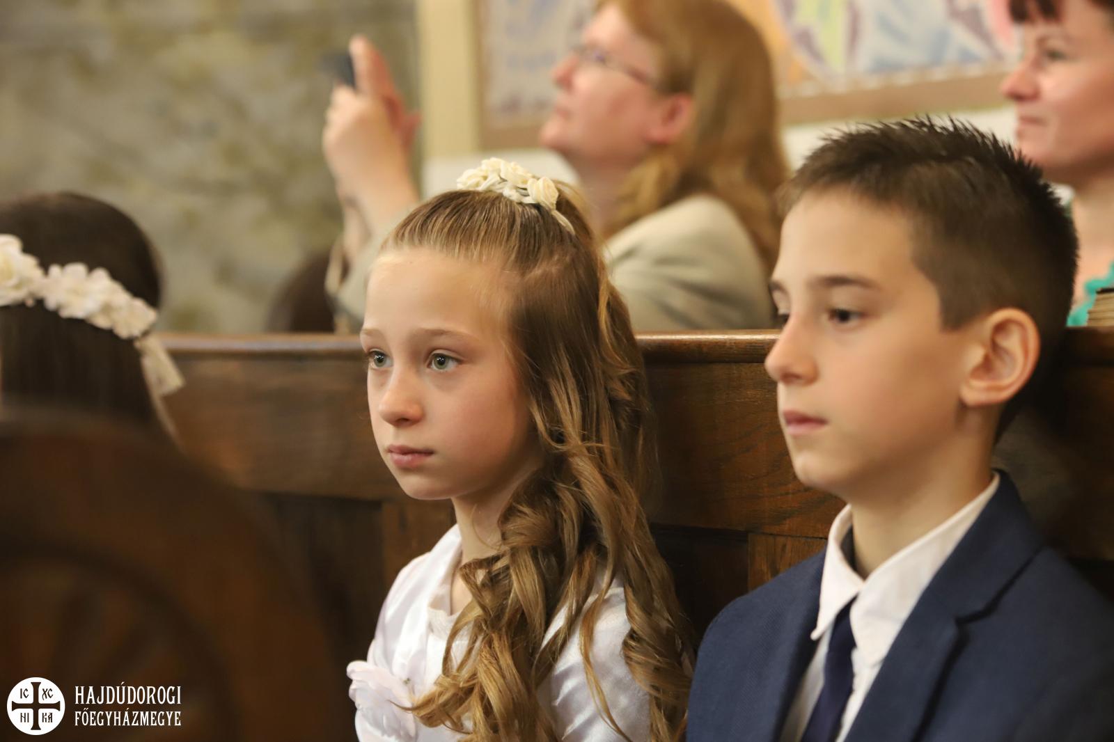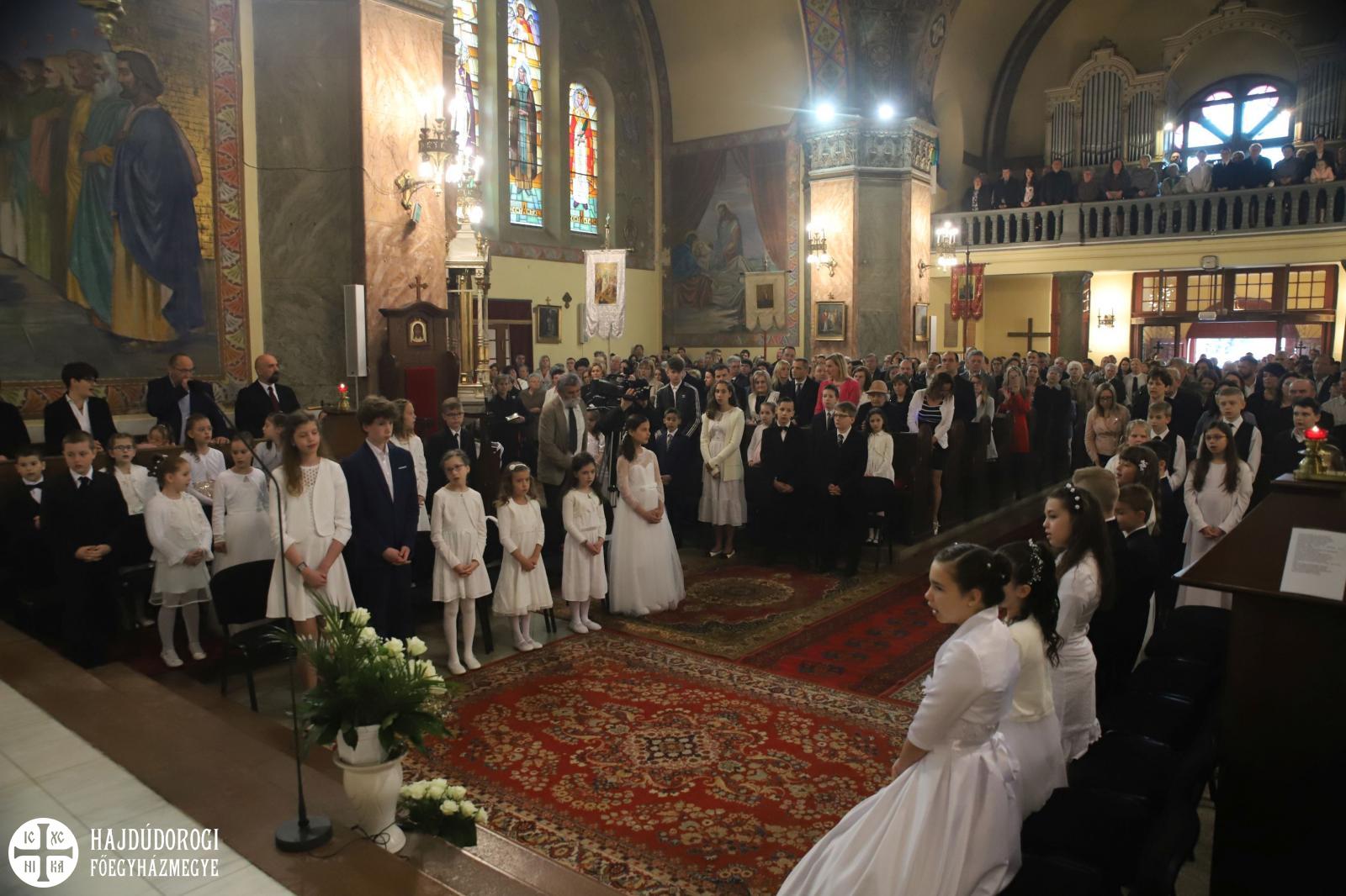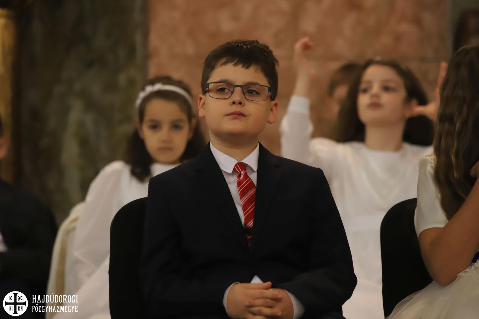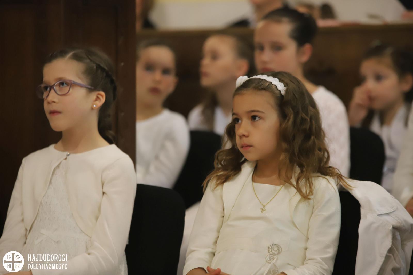 Ünneplőbe öltözött kisfiúk és kislányok indultak el ezen a borongós vasárnapon az érseki rezidencia udvaráról. Kapin István parókus atya és Zuró József káplán atya hónapok óta készítette a gyermekeket erre a napra, az oltári szentséggel való találkozás misztériumára.