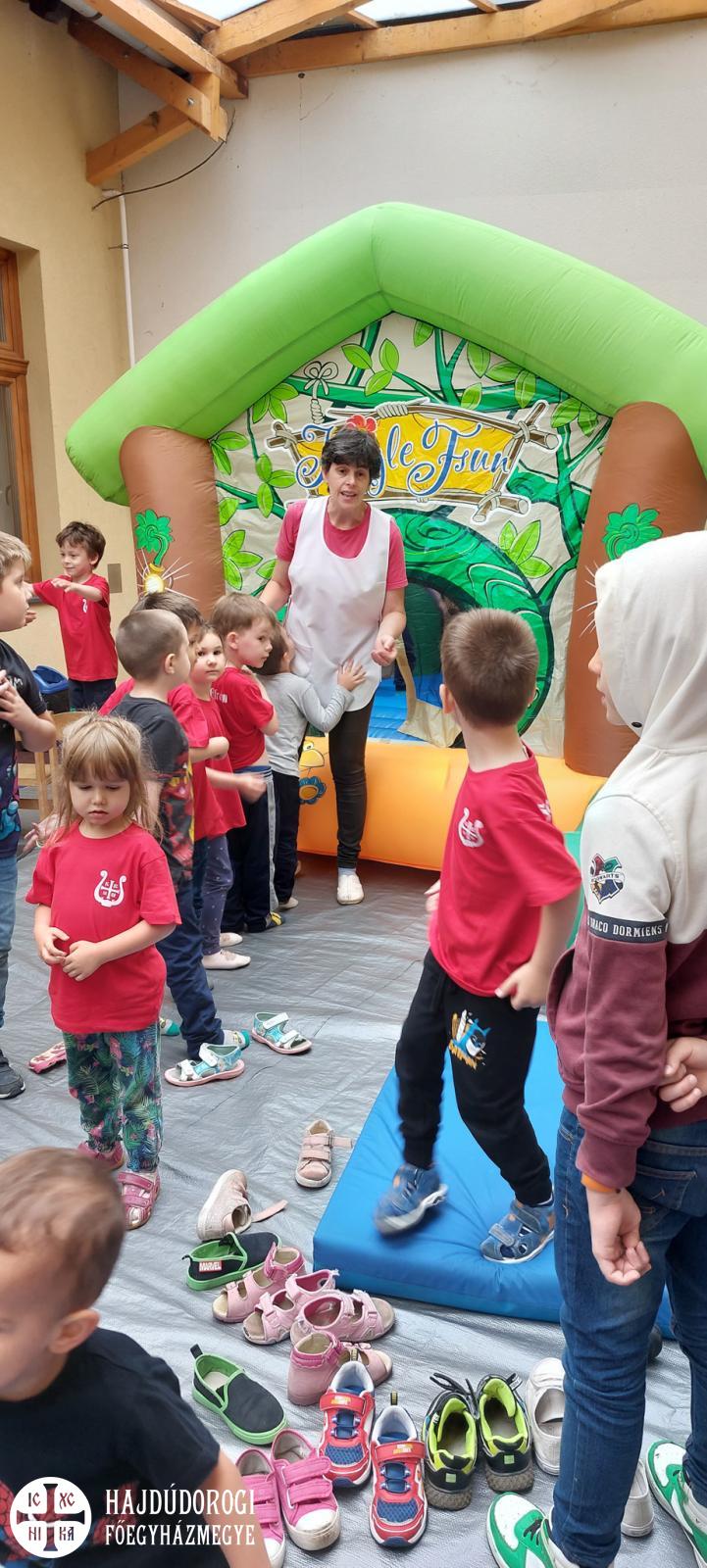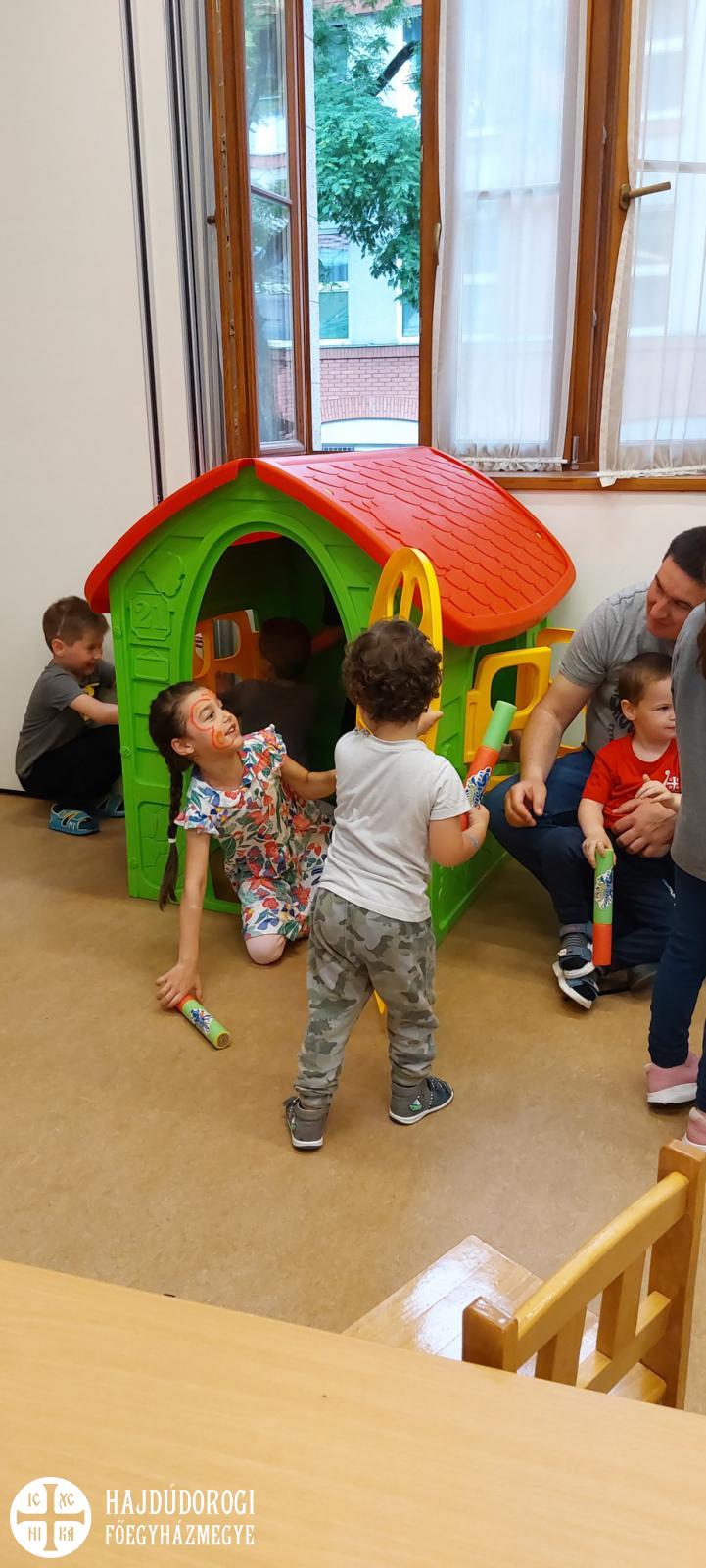 Így sem volt hiány a programokban, hiszen a gyerekeknek hajfonást, csillámtetoválást és arcfestést készítettek a Szent Bazil Görögkatolikus Óvoda, Általános Iskola, Gimnázium, Technikum, Szakképző Iskola, Készségfejlesztő Iskola és Kollégium Debrecen Postakerti telephelyének diákjai. Külön köszönet ezért a tagintézmény vezetőnek Nagyné Lakatos Szilviának, aki ezt koordinálta. Az óvoda udvari zárt fedett részén pedig ugrálóvár volt felállítva a gyerekeknek.