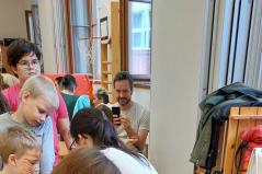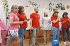 Az udvarra szervezett programot az időjárás miatt kisebb módosításokkal a belső közösségi térben tudták megtartani.