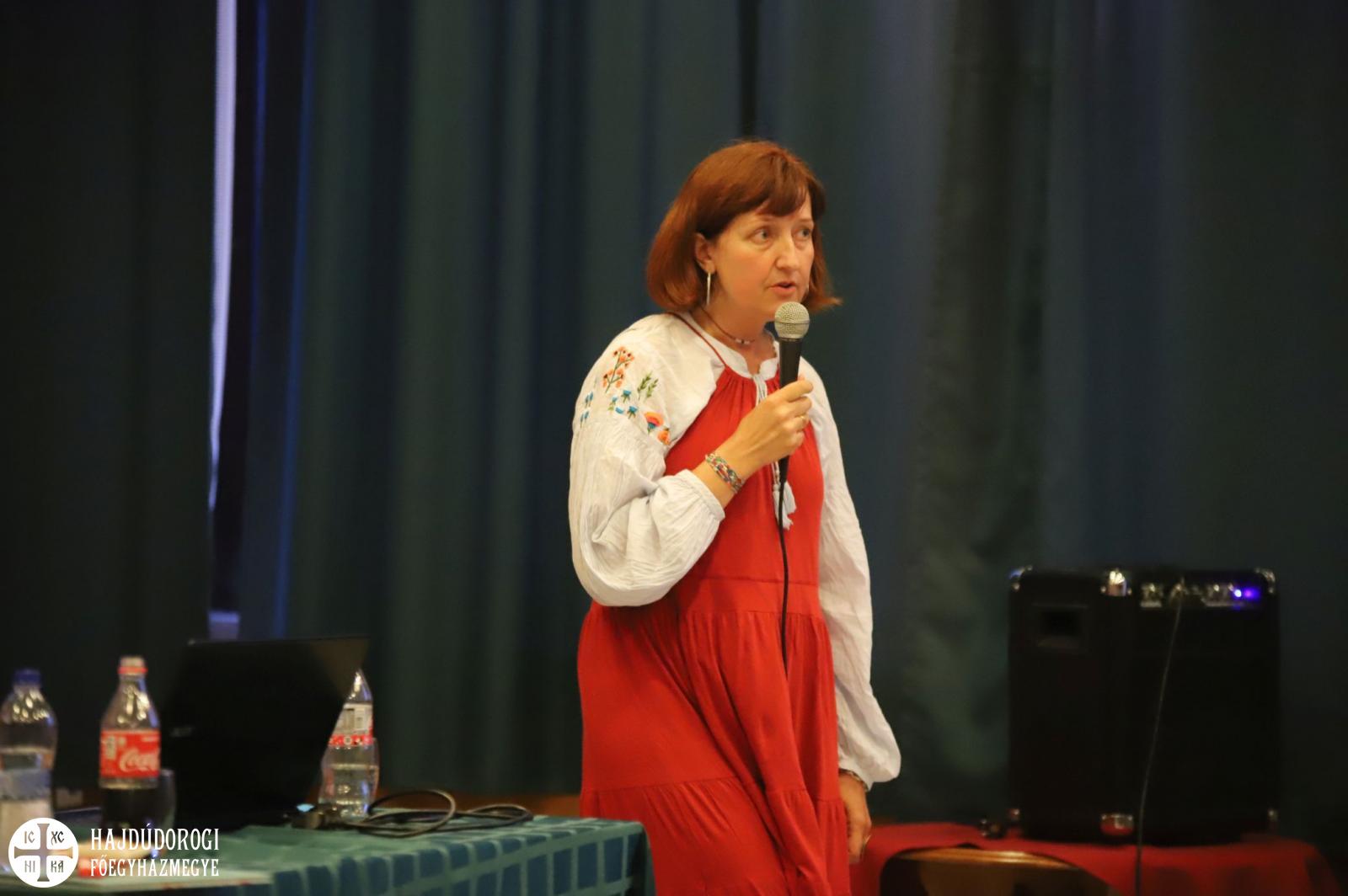 Másnap már régi ismerőst köszönthettek azok a táborozók, akik idén is Balatonföldvárt választották: Uzsalyné Dr. Pécsi Rita, neveléskutató „söpört” ismét végig a szálló nagytermében. A lendületes, humorban gazdag előadás ezúttal az okos eszközökről szólt, vagyis arról, meddig fejleszt és mettől rombol egy-egy „kütyü”.