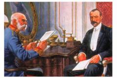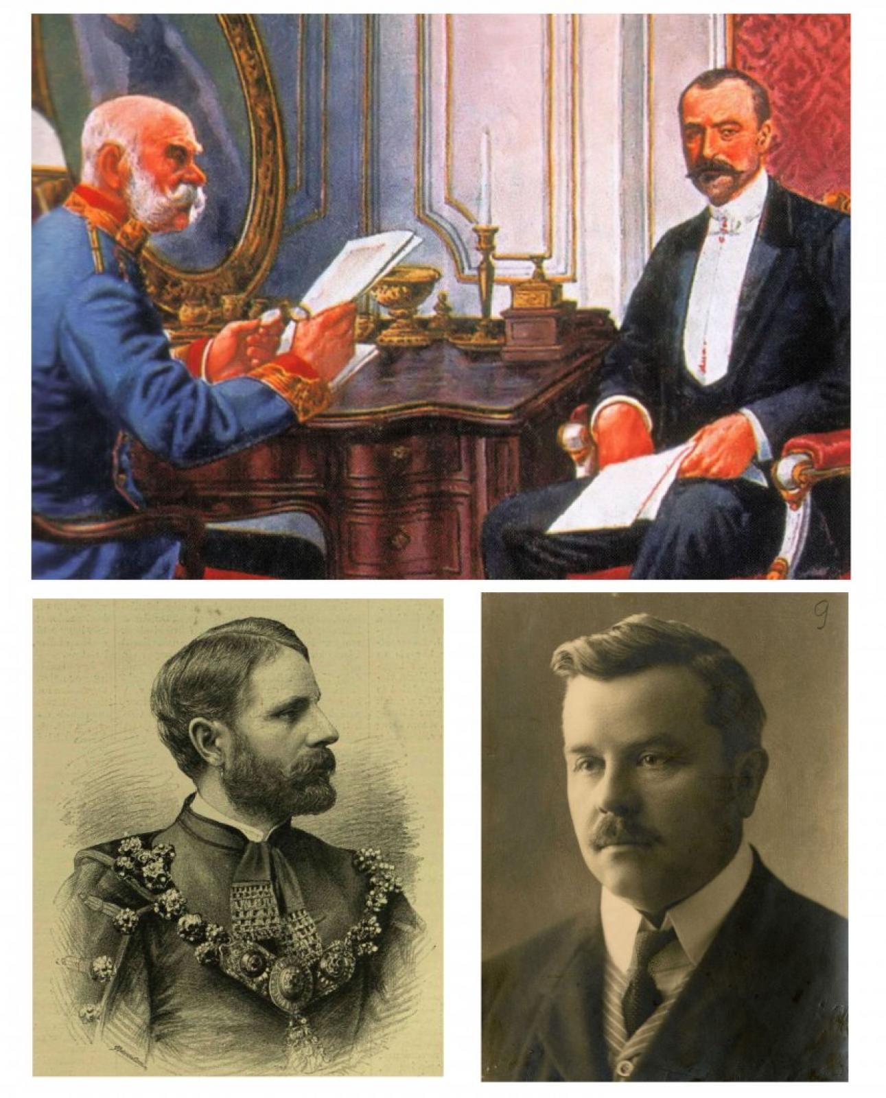 Ferenc József király Tisza Istvánnal, Khuen-Héderváry Károly miniszterelnök, Zichy János vallás- és közoktatási miniszter