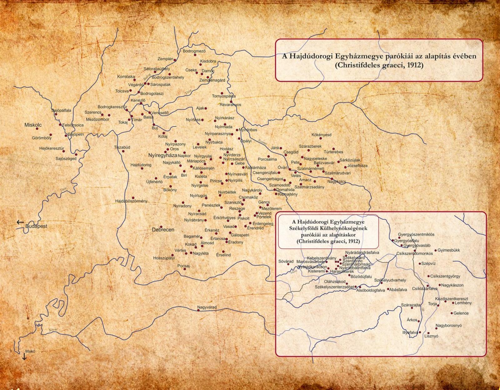 A Hajdúdorogi Egyházmegyébe sorolt parókiák 1912-ben