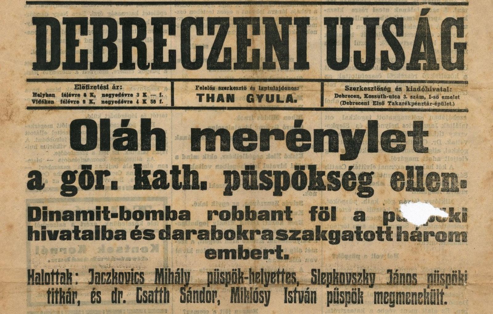 A román görögkatolikus közösségek jogos felháborodását kihasználták a román szélsőséges politikai erők is, sőt a debreceni bombamerénylet villanásában a háborúra készülő Oroszország titkosszolgálatát is megpillanthatjuk. Ekkor már annyira elmérgesedett a román-magyar viszony, hogy a merénylet megrendelői arra számítottak, a debreceni robbanás a magyarországi románok fegyveres felkelésének jele lesz.