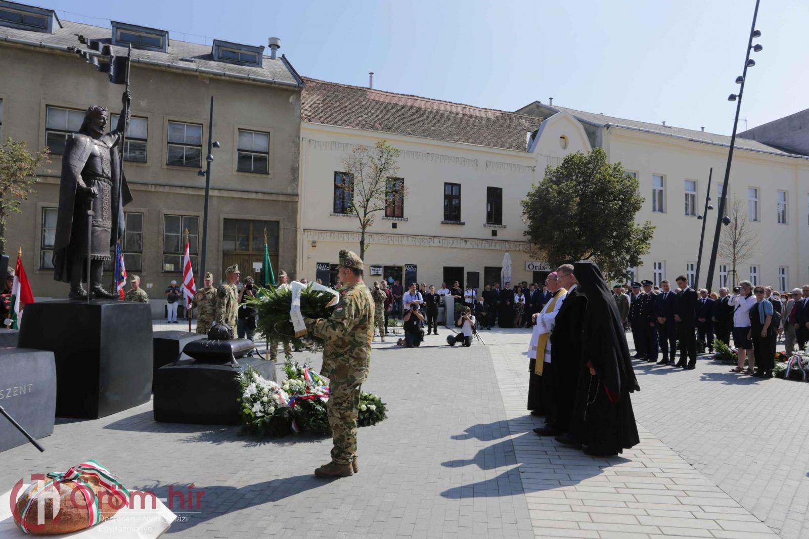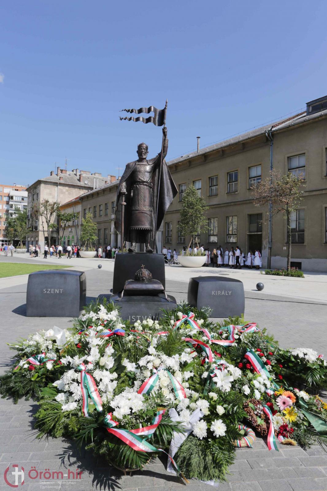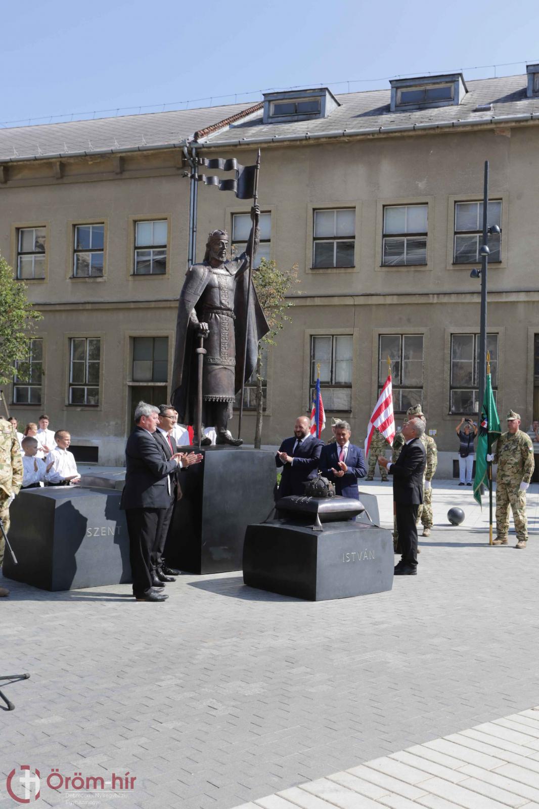 Jövőt építeni csak szilárd meggyőződéssel, valamint az Istenbe és az időtállóságba vetett hittel lehet. A jövő építésének egyik legkiemelkedőbb példája első királyunk életműve – kezdte Papp László polgármester ünnepi beszédét a szoboravatáson – A Szent István-i életmű nemzetünk történelmének legidőtállóbb alkotása, amely egy évezred távlatában is erőt adó fundamentuma nemzetünk létének és jövőjének. Ez a szilárd alap adta meg az esélyt arra, hogy az évszázadok viharait átvészelve, büszkén képviseljük a szent király által ránk hagyott keresztény magyar államiságot – fogalmazott a polgármester.