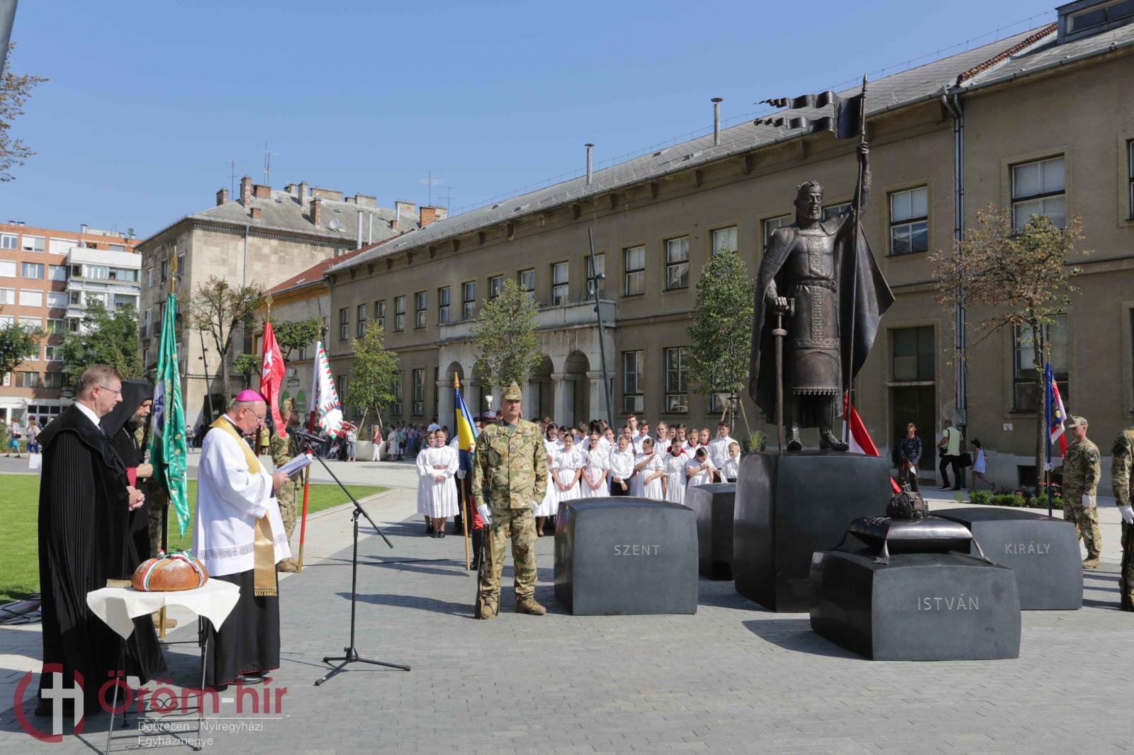 Ezt követően a szobor leleplezése történt, majd Palánki Ferenc debrecen-nyíregyházi megyéspüspök, Kocsis Fülöp görögkatolikus érsek-metropolita és Fekete Károly református püspök megáldották a Szent István szobrot, majd az ünnepség végén koszorúkat helyeztek el a köztéri alkotásnál.