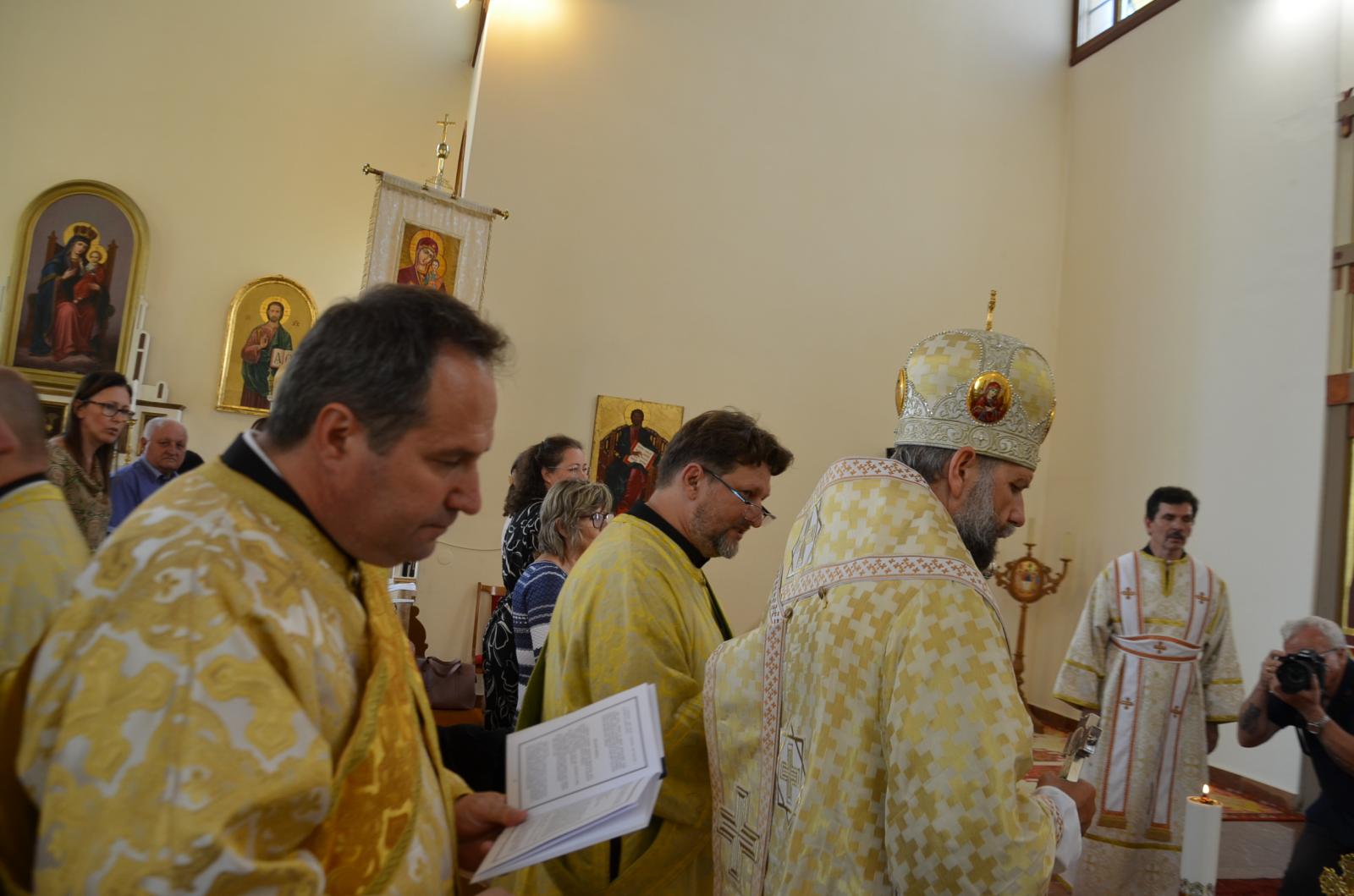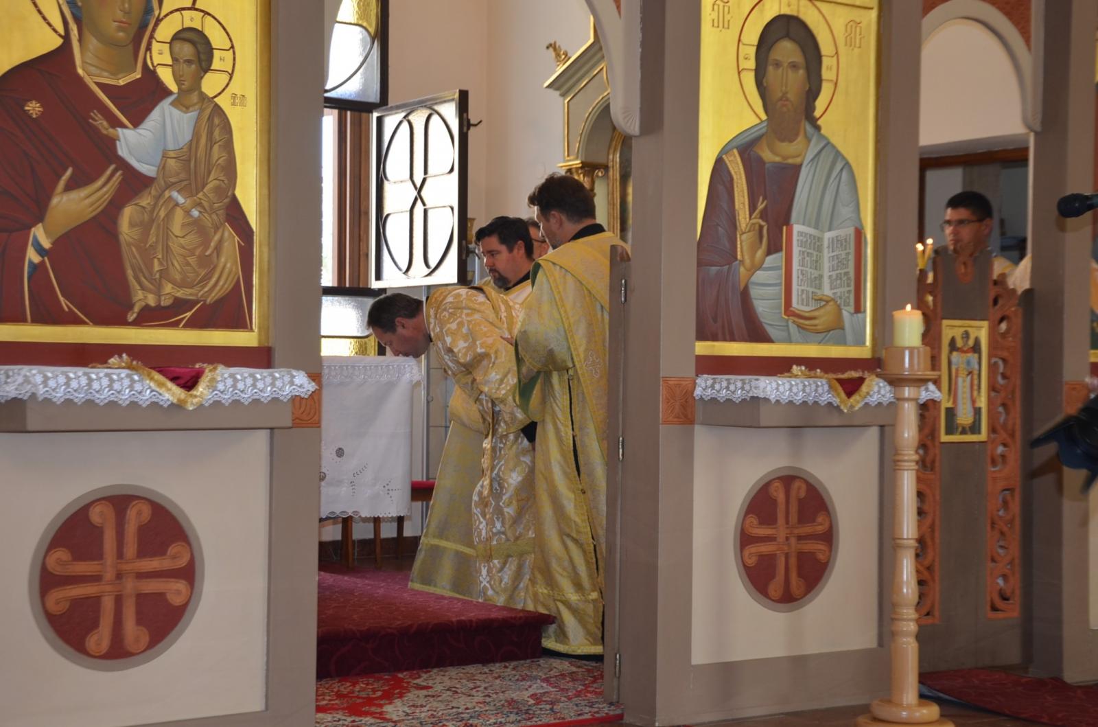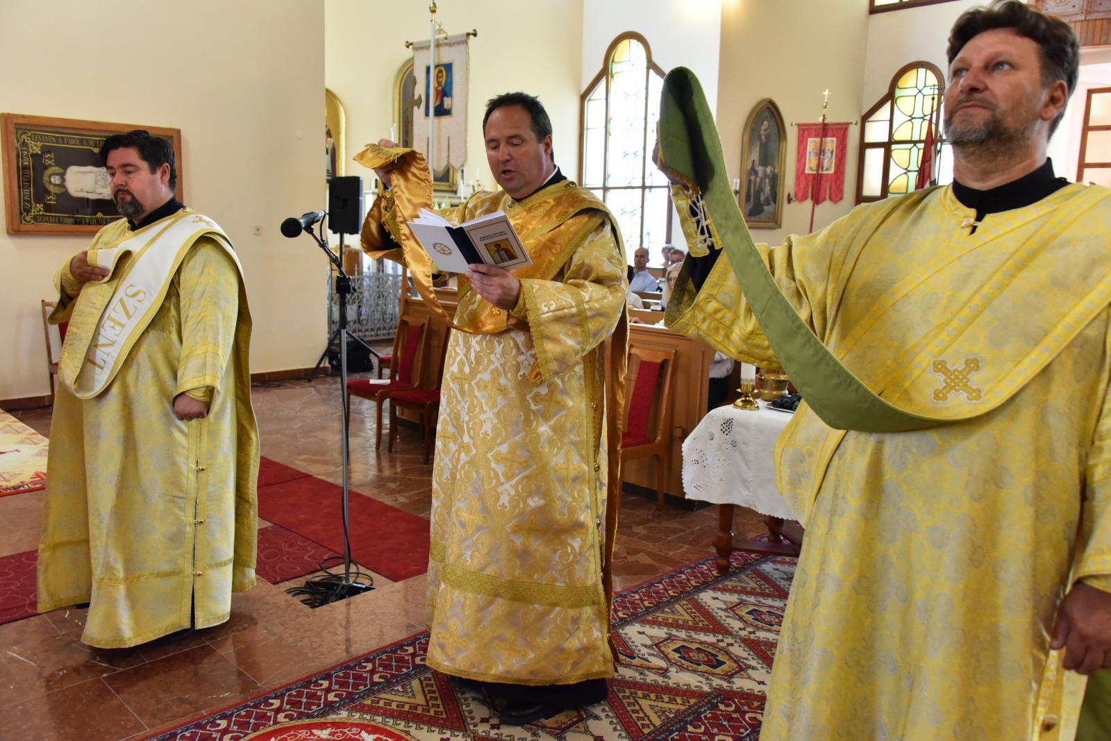 A reggeli utrenye után kezdődött a püspöki Szent Liturgia és a diakónusszentelés, melyen 19 paptestvér és a hívek együtt imádkoztak. Mint minden nagy ünnep alkalmával, most is megtelt a templom. Fülöp érsek-metropolita atya szentbeszédében kiemelte a diakónusi szolgálat lényegét.