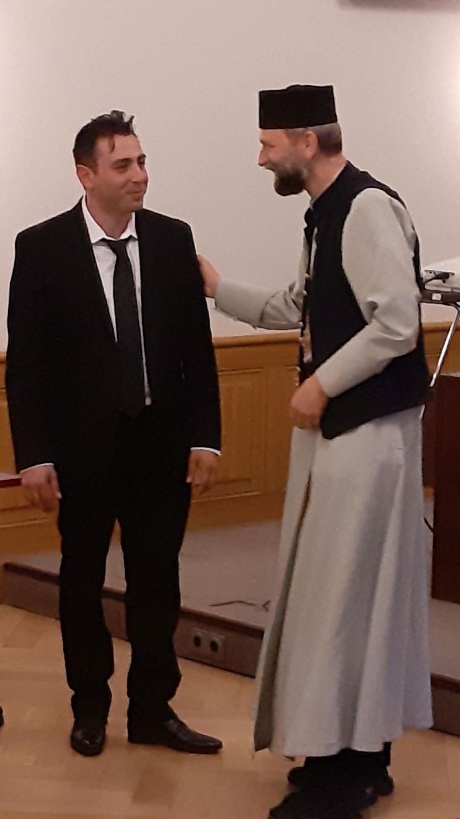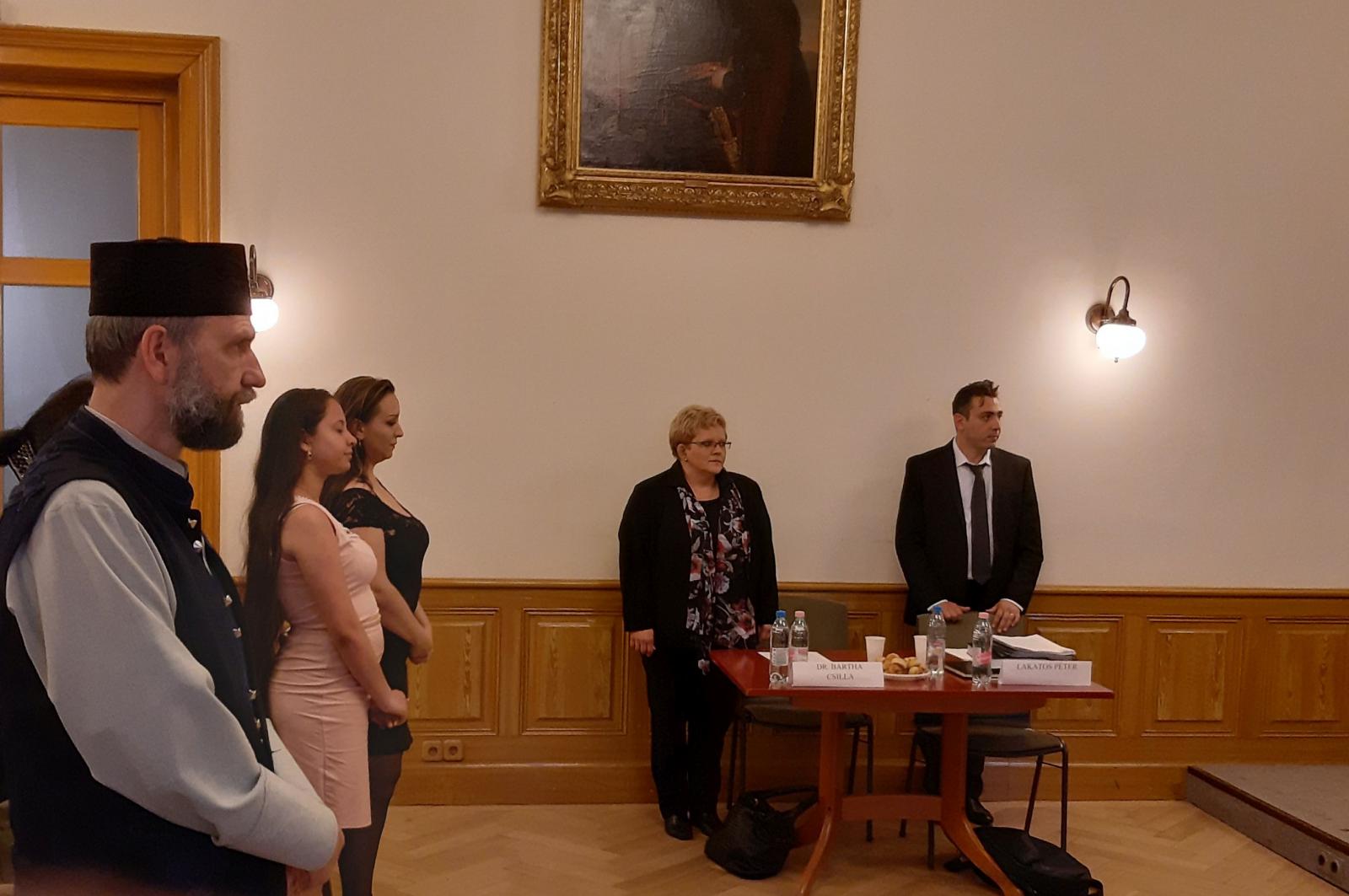 Megható pillanat volt, amikor a bizottság kihirdette, hogy Lakatos Péter maximális pontszámmal, vagyis summa cum laude eredménnyel méltó a doktori címre. A köszöntések és gratulációk közül a mi görögkatolikus szívünknek érsek atya szavai voltak a legkedvesebbek: egy apa tekint így a fiára, ahogy ő nézett most Péter atyára, büszkeséggel telt szívvel. Másokat is megérintett a pillanat, nemcsak a nők törölgették könnyeiket… A legszebb pillanat az volt, amikor érsek atya javaslatára körbe állva professzorok, papok és kutatók, rokonok és barátok, romák és nem romák együtt énekeltük el húsvéti görögkatolikus imádságunkat, amit azután romaniul is elénekeltek Péter atya rokonai. Ilyet még nem látott-hallott a Kari Tanácsterem! Más is adott már itt hálát Istennek, de ilyen formában, emelkedett hangulatban, több szólamban… még biztosan senki.