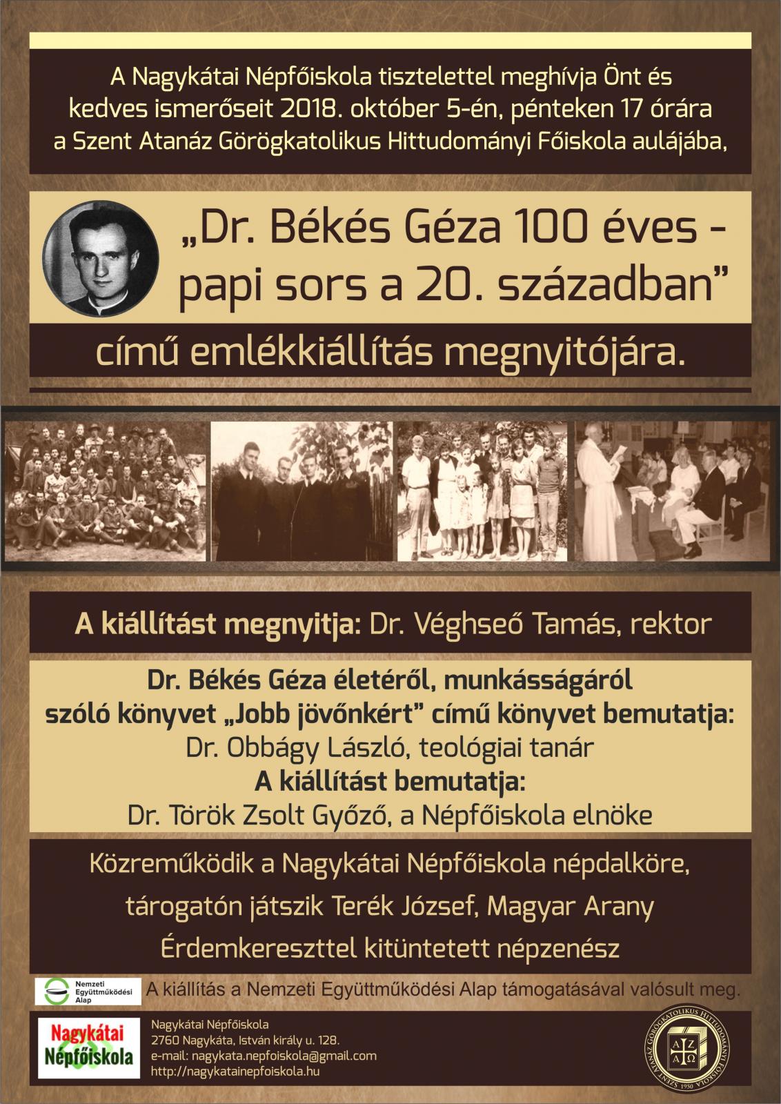 Dr, Békés Géza (1917-2007) görögkatolikus áldozópapra emlékeznek a Szent Atanáz Görögkatolikus Hittudományi Főiskolán. Részletek a plakáton.
