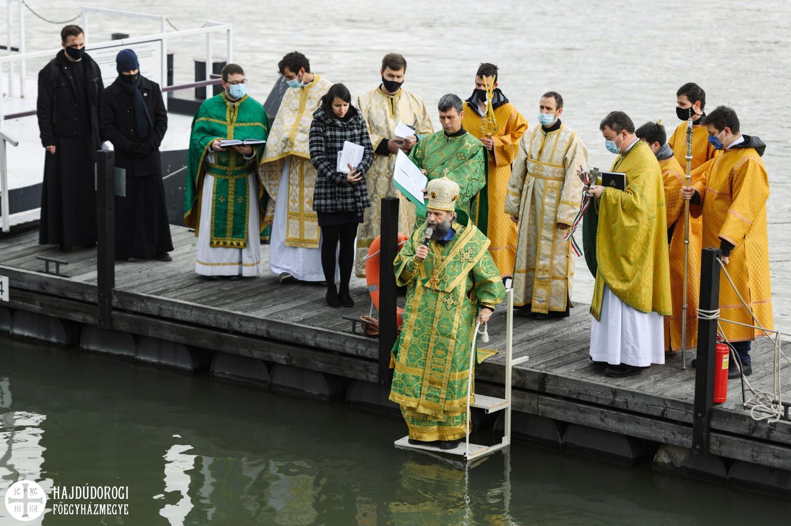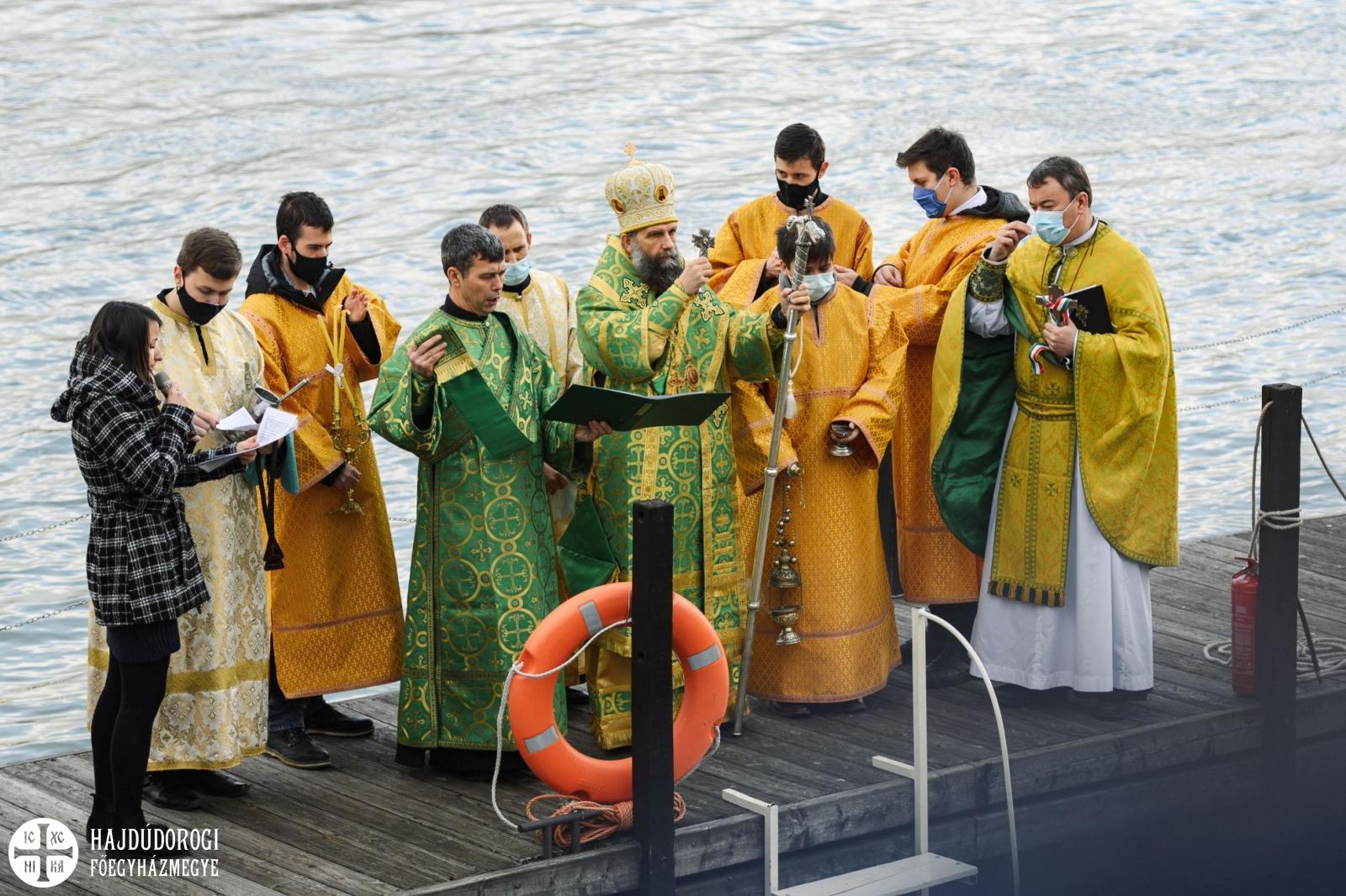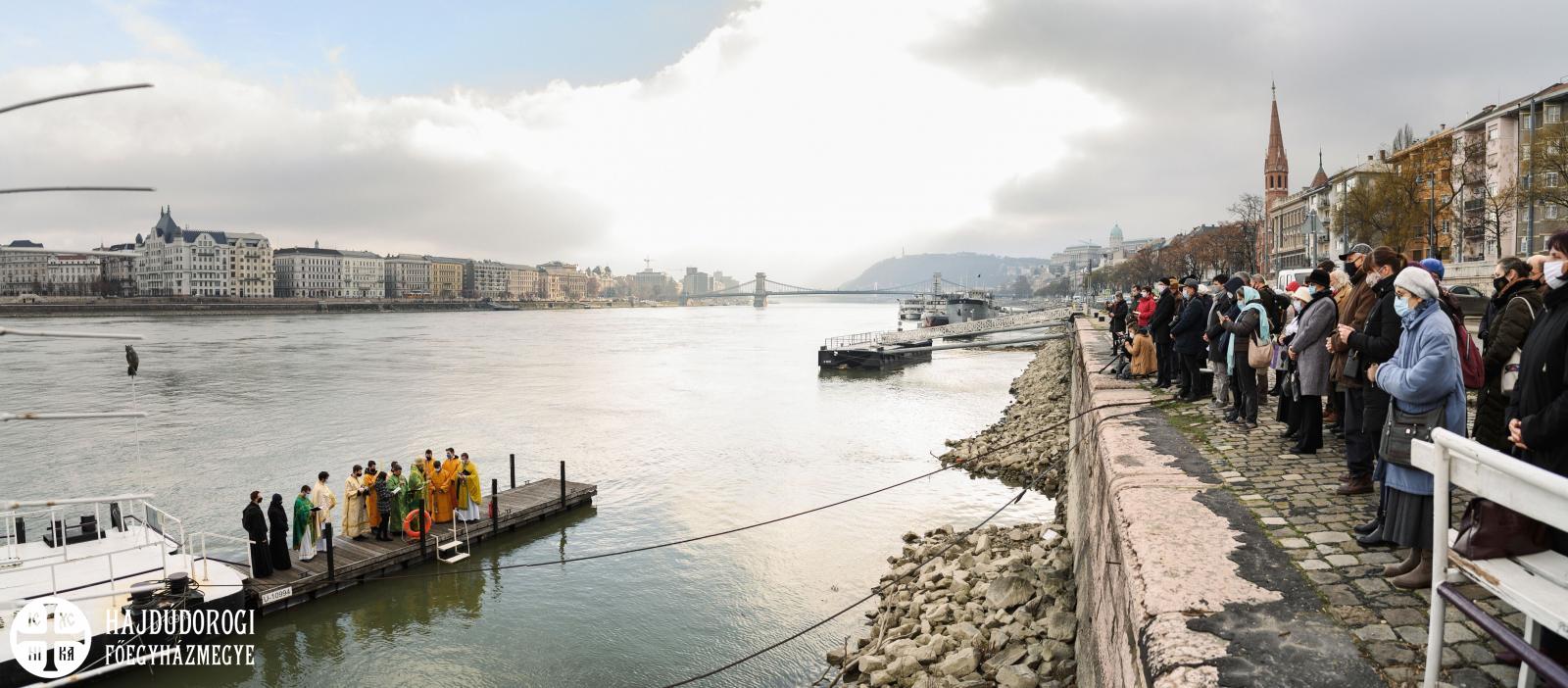 A másik különlegességet azonban valóban az elővigyázatosság tette indokolttá. A szentelés egyik szép mozzanata, hogy a keresztet a tropár éneklése közben háromszor belemerítik a vízbe, majd minden résztvevő ezt a szenteltvízből kiemelt keresztet csókolja meg. Ez most elmaradt, de azért a frissen szentelt Duna víz áldásából minden jelenlévő imádkozó bőségesen részesülhetett.