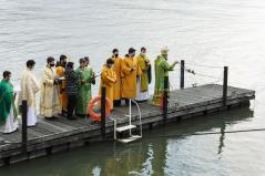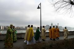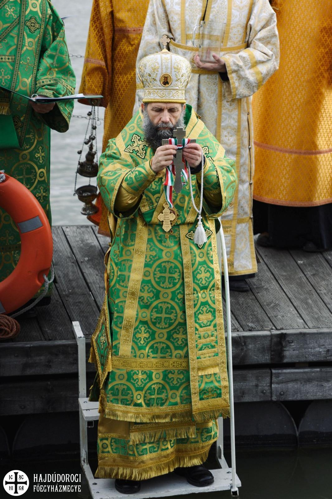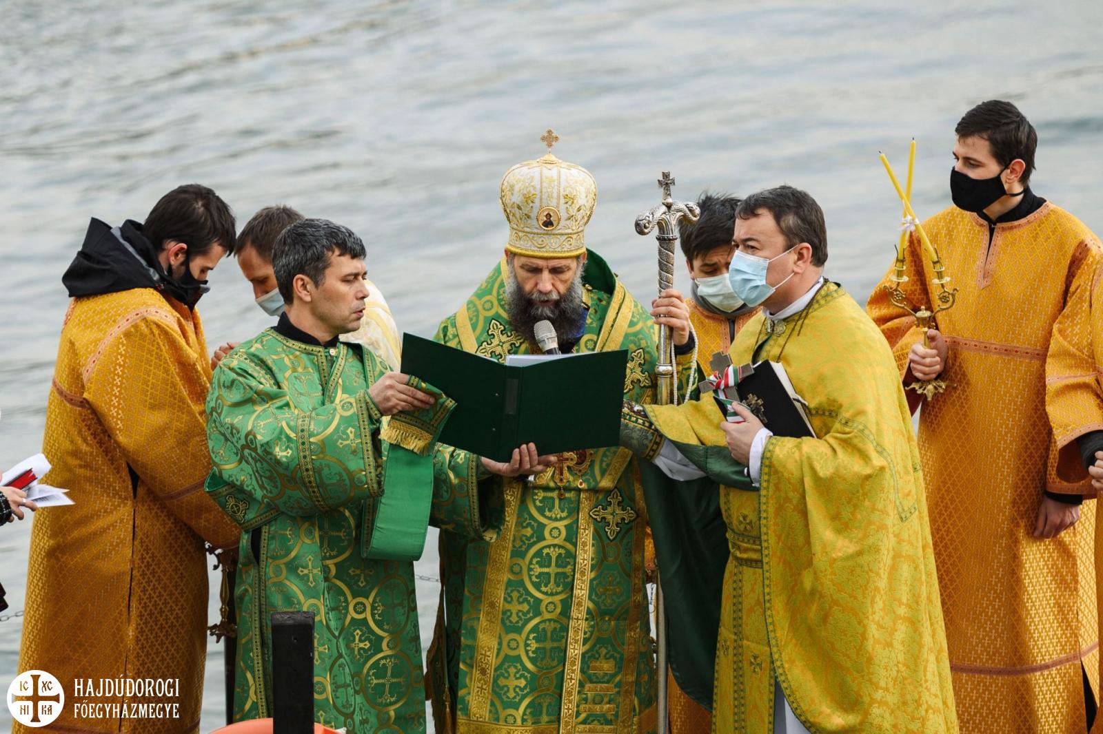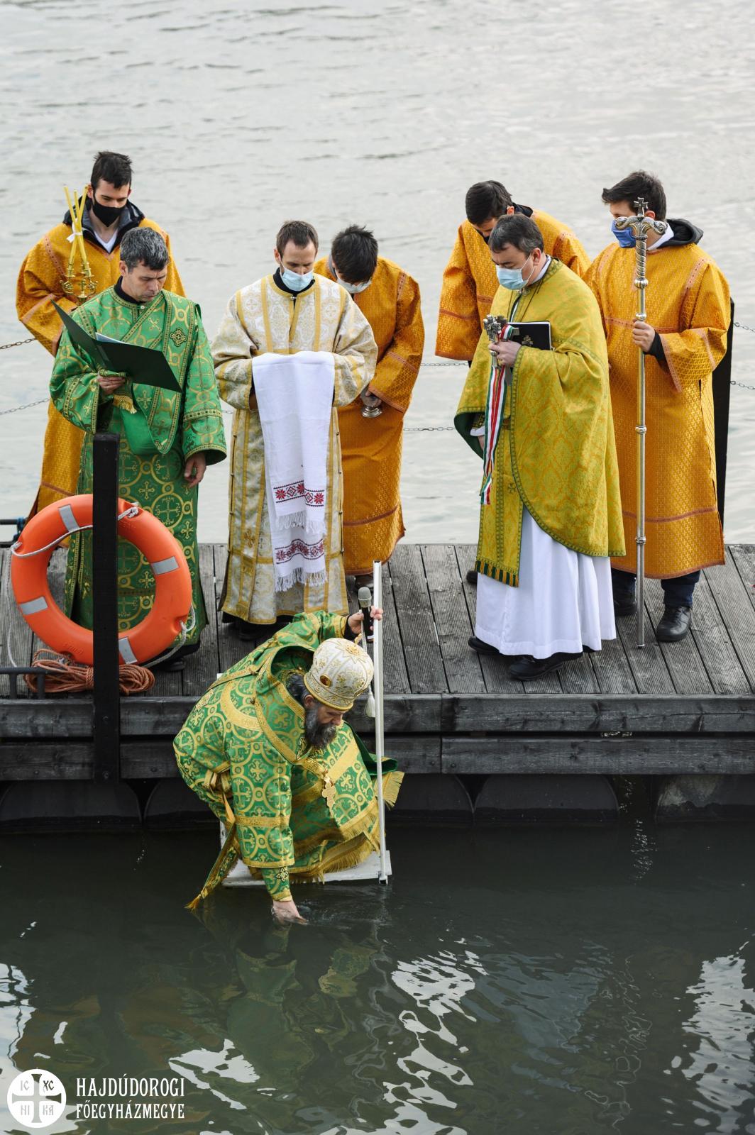 A másik különlegességet azonban valóban az elővigyázatosság tette indokolttá. A szentelés egyik szép mozzanata, hogy a keresztet a tropár éneklése közben háromszor belemerítik a vízbe, majd minden résztvevő ezt a szenteltvízből kiemelt keresztet csókolja meg. Ez most elmaradt, de azért a frissen szentelt Duna víz áldásából minden jelenlévő imádkozó bőségesen részesülhetett.