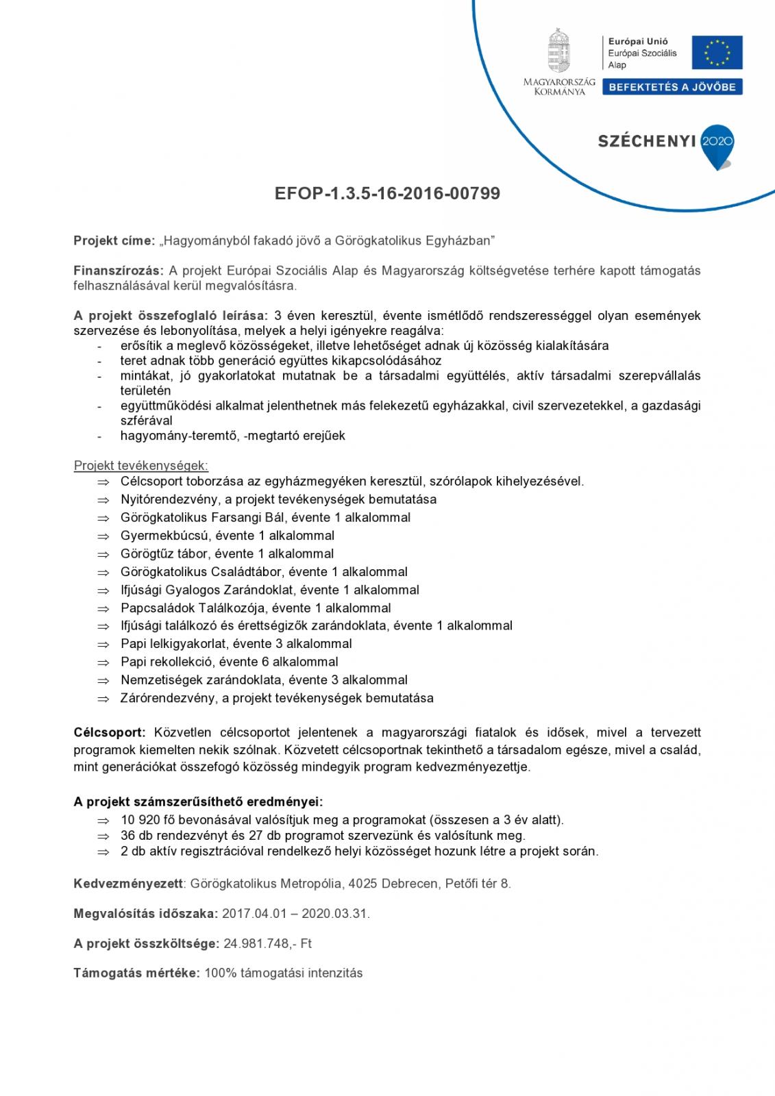 EFOP-1.3.5-16-2016-00799-„Hagyományból fakadó jövő a Görögkatolikus Egyházban”
