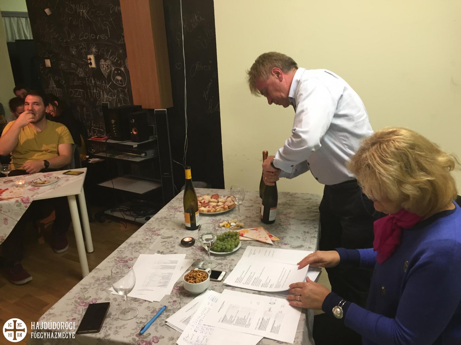 Az oldott hangulatról a Béres Szőlőbirtok és Pincészet borai gondoskodtak, amelyet Béres úr nagy lelkesedéssel és alapos szakmai ismeretekkel kiegészítve mutatott be a fiataloknak. Emellett Tokaj-Hegyaljához kötődő érdekességeket is hallhatott a közönség, többek között, hogy miként került a III. században élő I. Szent Orbán pápa teljes ereklyéje Monokra, aki egyébként a szőlő és a bor Európa-szerte tisztelt védőszentje, és milyen körutat tett meg az ereklye a környező településeken. Megismerhettük a Vitis Tokajensis-t, a miocénkori ősszőlő nevét, mely levelének sok millió éves megkövült lenyomatát a festői szépségű tokaj-hegyaljai falucskában, Erdőbényén találták meg és névadója a Béres aszúnak is. A boroktól távolodva azt is megtudhattuk, hogy miként énekelnek az igazgatóság tagjai karácsonyi énekeket a gyógyszergyár decemberi rendezvényén ezáltal is bizonyítva, hogy a gazdasági életben is meg lehet tartani a keresztény értékeket, hagyományokat, fáklyaként világítva a többi keresztény munkatárs előtt. Kiemelték, hogy ne féljünk az elköteleződéstől, a családalapítástól, buzdítottak hazánk szeretetére, a hagyományok ápolására és a szülőföldön való munkavállalásra.
