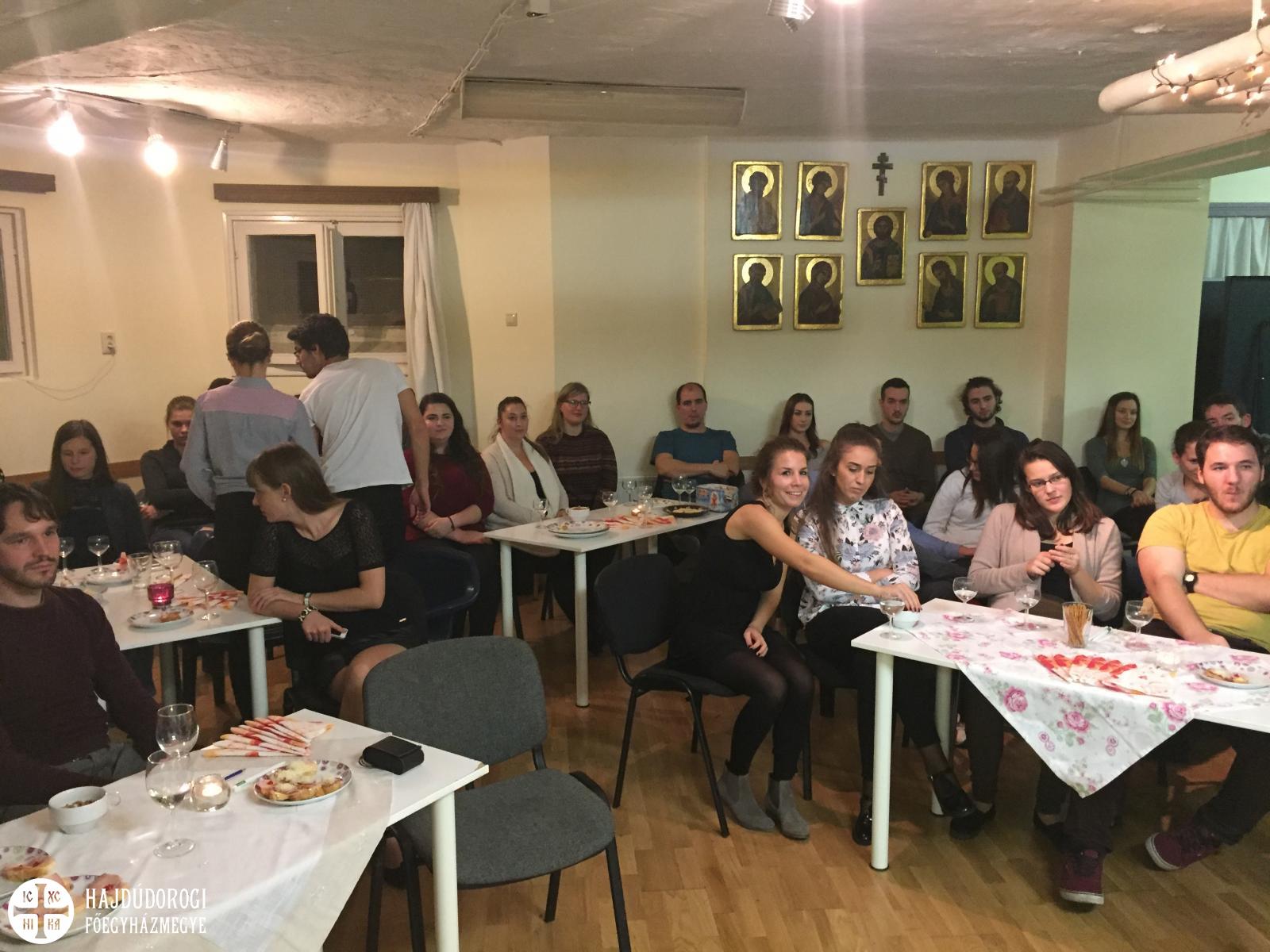 Mivel lehet tölteni egy októberi kedd estét az egyetemi zh-k vagy egy hosszú munkanap után? 40 fiatal úgy gondolta, hogy érdemes részt venni a Kocsis Tamás atya által vezetett parakliszon, majd az követően meghallgatni egy házaspárt, akik életükkel és a közöttük érzékelhető harmóniával bizonyították számunkra, hogy igenis tudnak miről mesélni, ha felkérik őket, hogy a boldogságról tartsanak előadást.