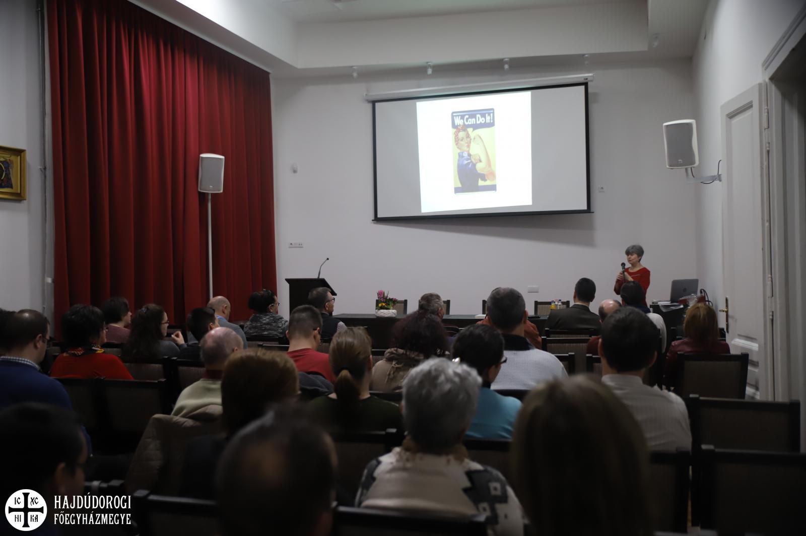 A pár idén július 1-jén ünnepli majd 30 éves házassági évfordulójukat, így igen nagy tapasztalatuk van abban, hogyan lehet a nehézségek ellenére is szeretetben, a másikra odafigyelve élni. Az előadás különlegessége az volt, hogy egyik lányuk is velük tartott, aki tavaly nyáron mondta ki a boldogító igent, így ő friss házasként, a szülői mintát alapul véve mesélt arról, hogy miként lehet a jó gyakorlatotokat átörökíteni.