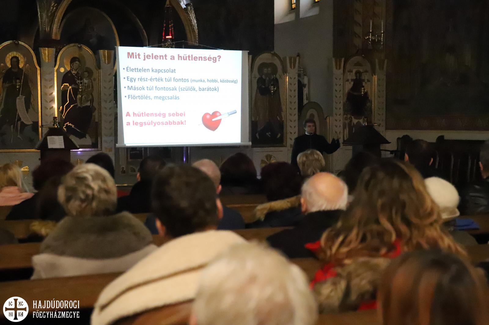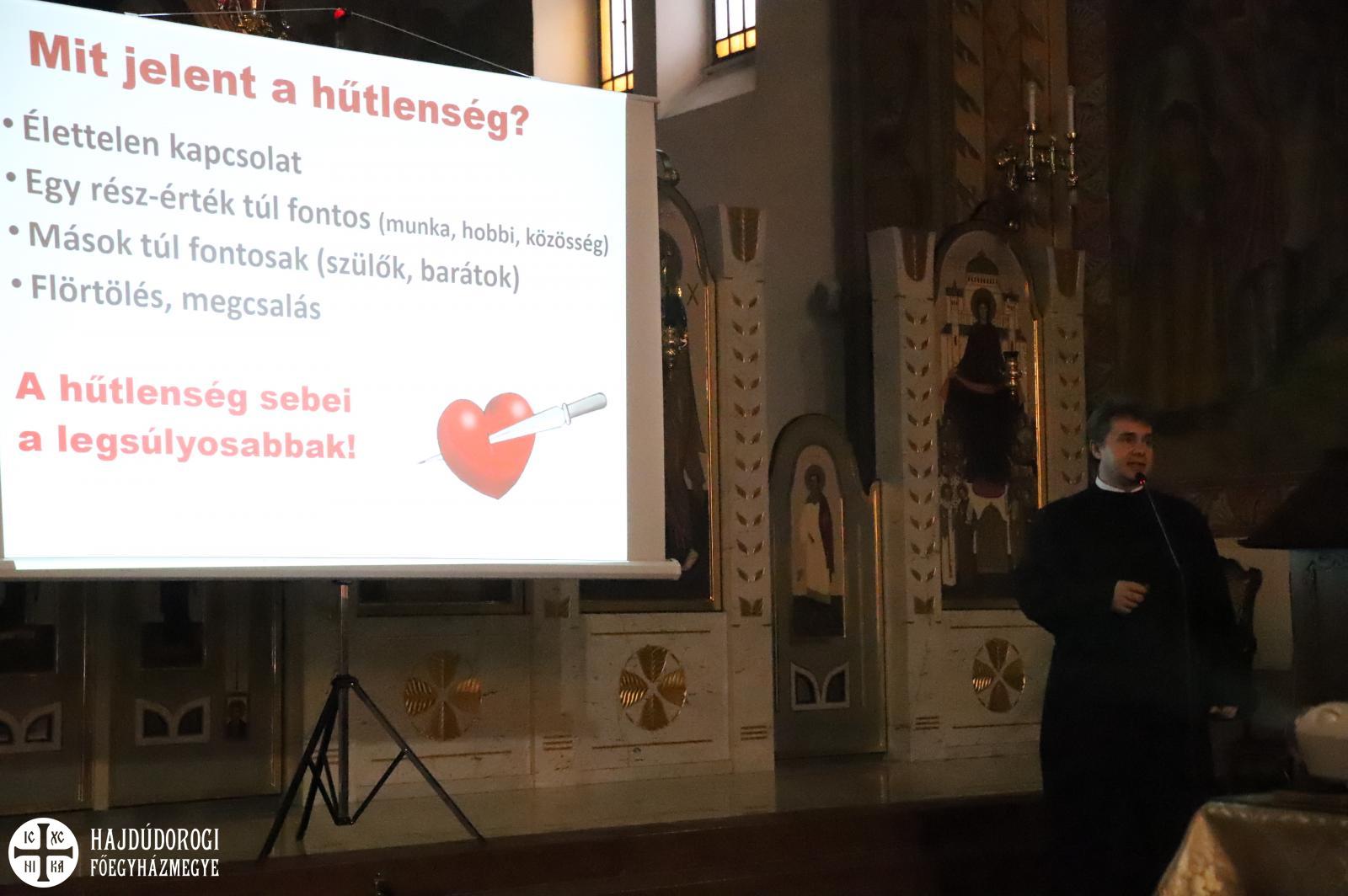 A morálteológus felhívta a figyelmet arra is, hogy egy kapcsolat csak akkor lesz működőképes, ha a gyöngéd intimitás, pici gesztusok beépülnek a mindennapokba. Nem utolsó sorban pedig a pároknak nem csak magunkban, hanem a szentháromságban is bízniuk kell, ezzel odafigyelve a családi spiritualitásra.