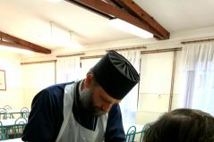 A monotonnak tűnő, de mégis lelkileg felüdítő zsolozsmástábor alatt sok nagyszerű beszélgetésben és közös élményben lehetett részük a lelkigyakorlatozóknak, egyik ilyen élmény a közös koliba készítés volt, melyet a résztvevők a vasárnapi Püspöki Liturgiát követően fogyasztottak el.